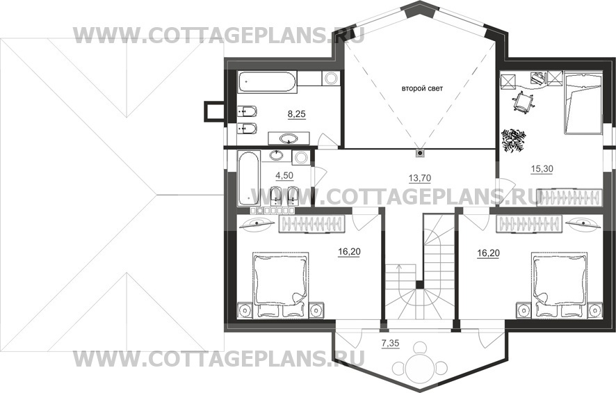 | Высота потолков мансардного этажа (мм.) | 3000 |