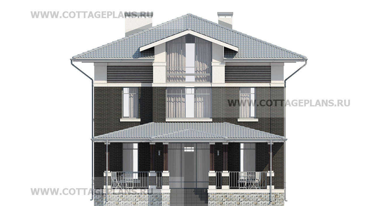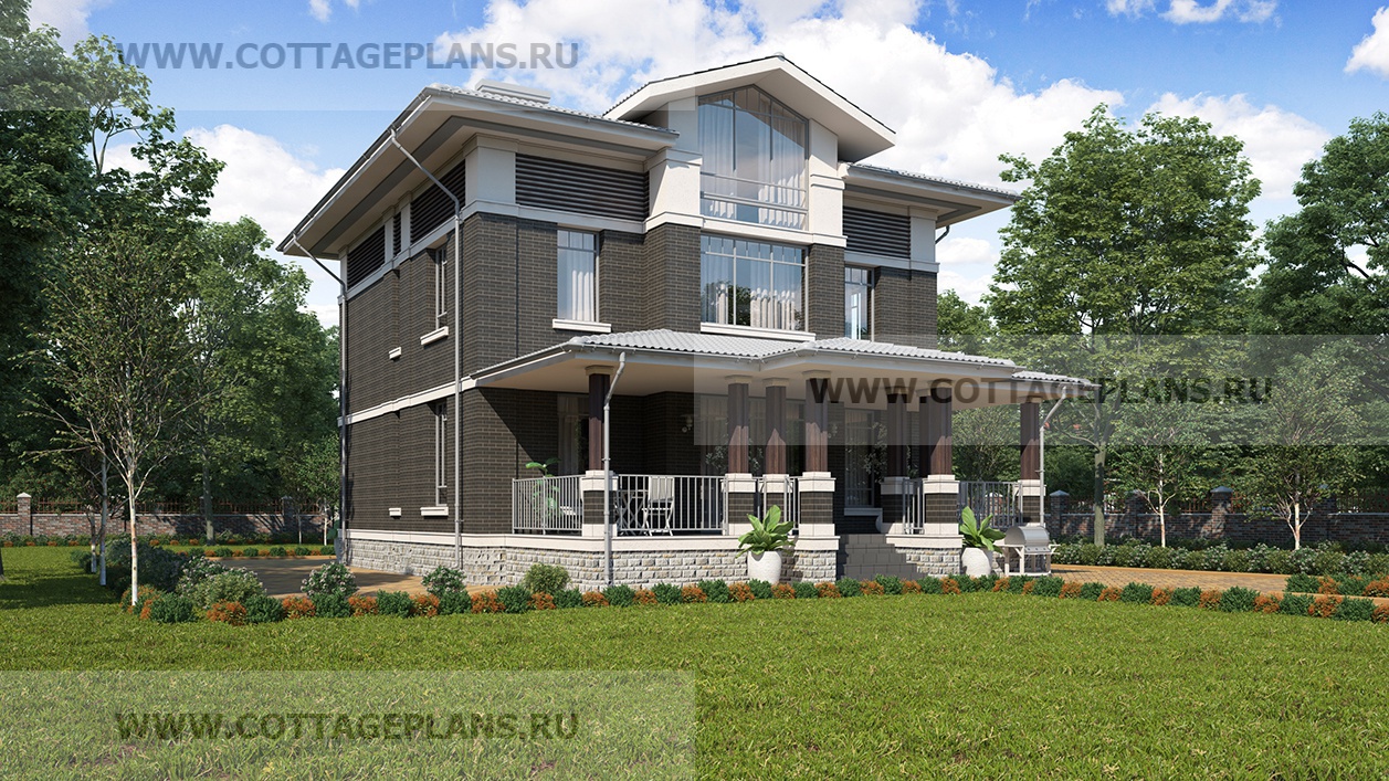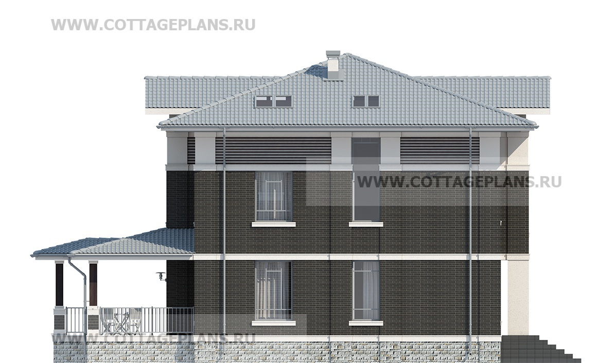 Проект дома 74-88 площадь 341.1 м2* из пеноблоков, газоблоков, трёхэтажный с мансардой, с восемью спальнями