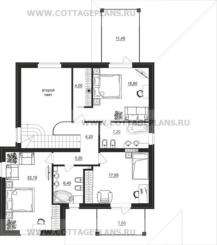 Проект дома 100-15 площадь 203.7 м2* из кирпича, керамических блоков, двухэтажный с полноценным вторым этажом, со вторым светом