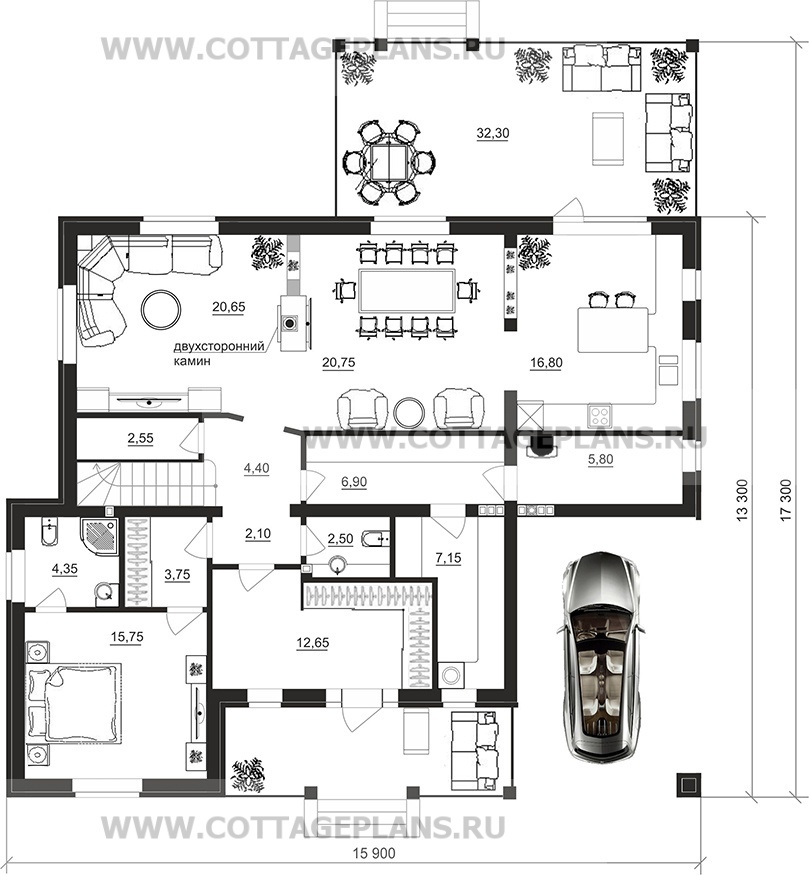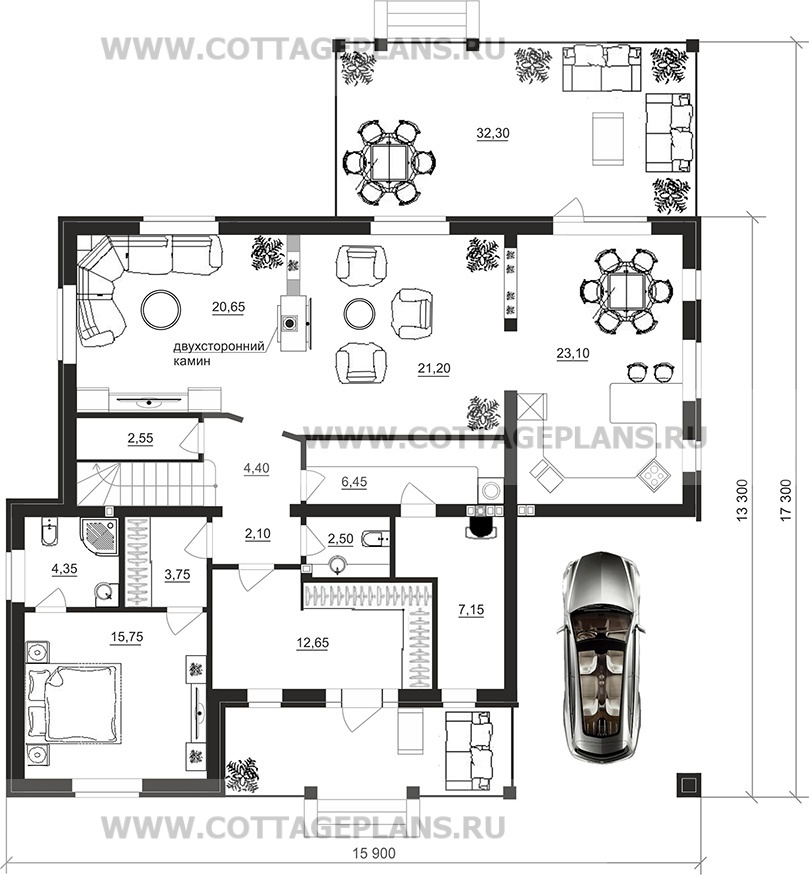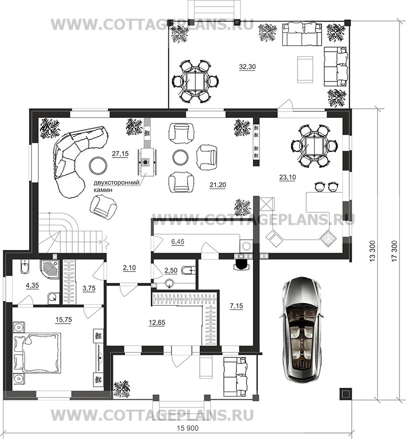 - 4 спальни с цоколем габариты 10 на 15