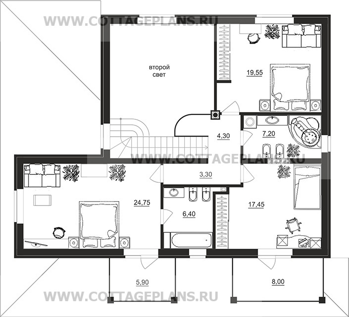 | Высота потолков 2-го этажа (мм.) | 3000 |