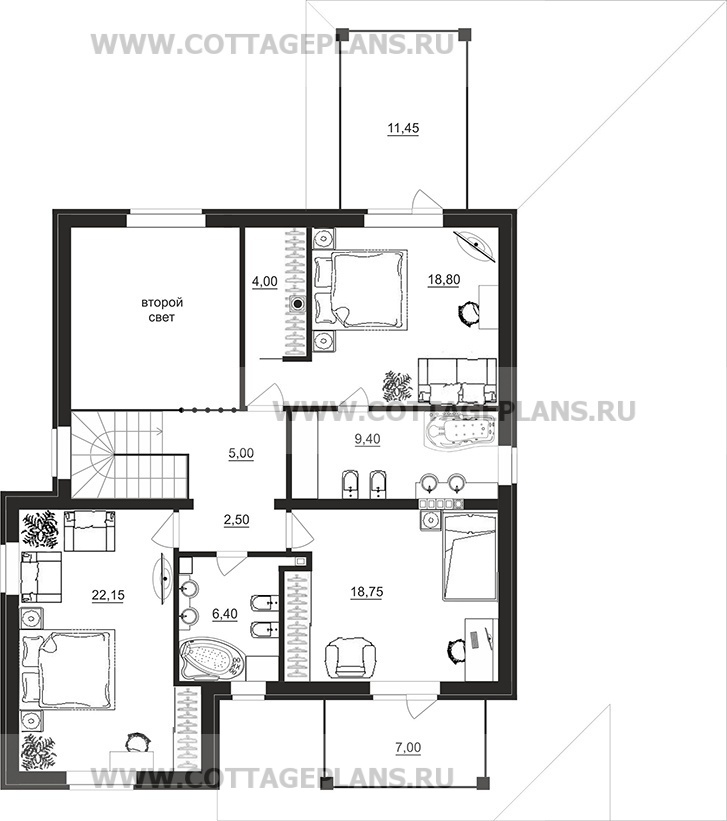 Проект дома 100-19 площадь 228.2 м2* из кирпича, керамических блоков, двухэтажный с полноценным вторым этажом, со вторым светом
