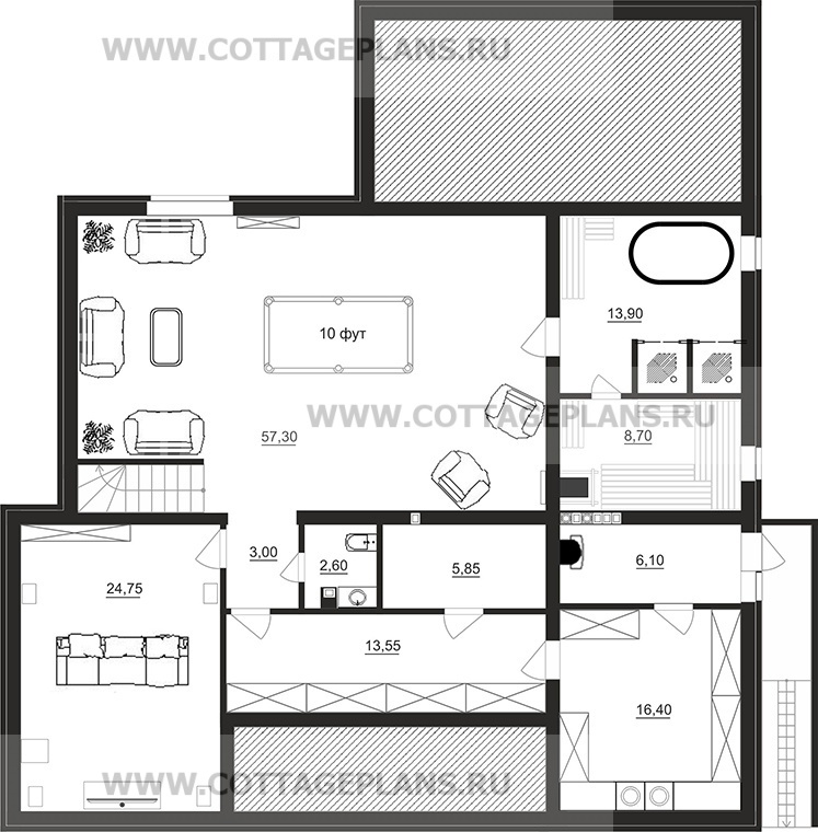 | Высота потолков цокольного этажа (мм.) | 2800 |