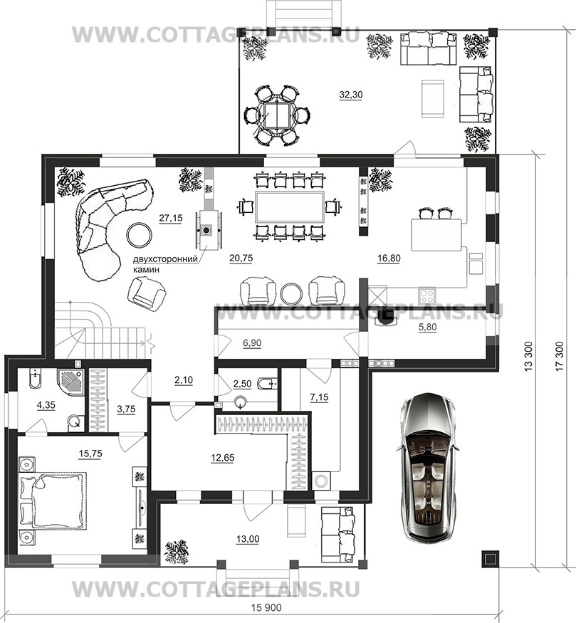 - 4 спальни с цоколем габариты 10 на 15