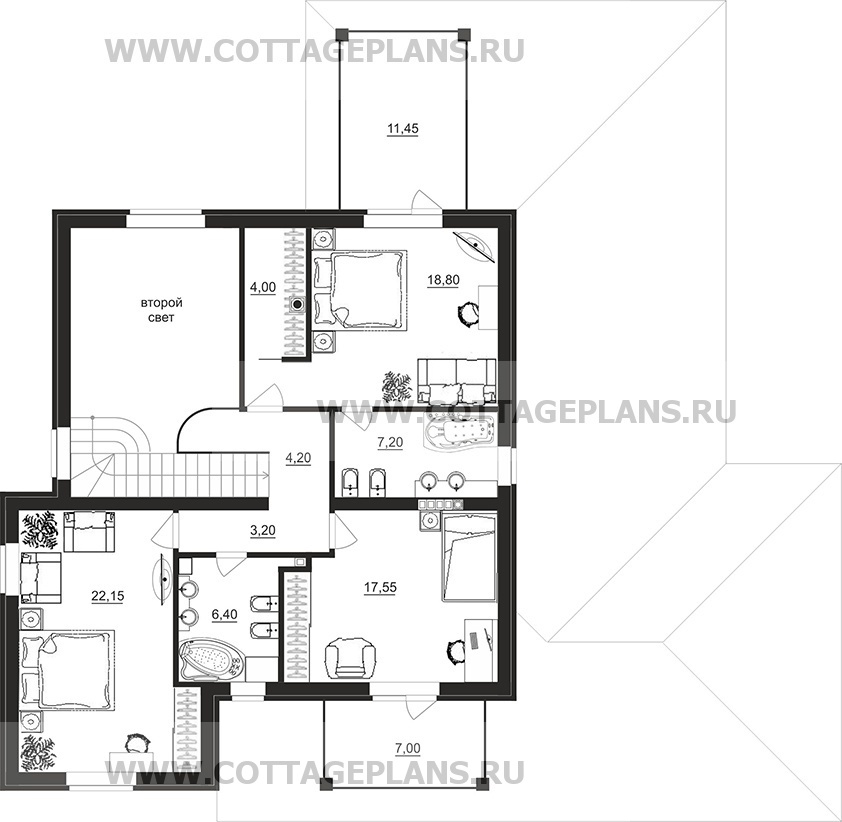 Проект дома 200-16 площадь 203.7 м2* из пеноблоков, газоблоков, двухэтажный с полноценным вторым этажом, со вторым светом
