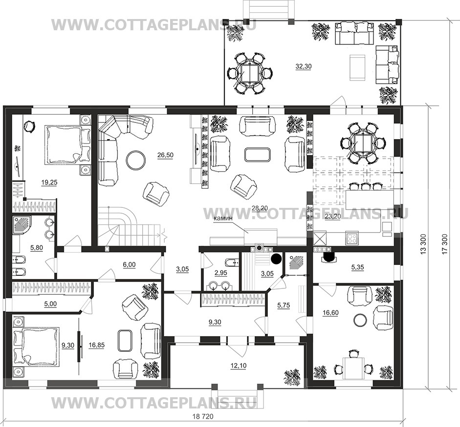 - 4 спальни с цоколем габариты 10 на 15