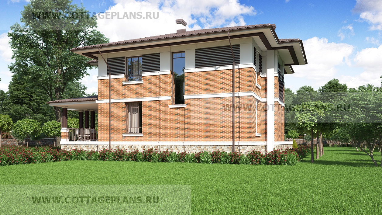 Проект дома 201-47 площадь 216.4 м2* из пеноблоков, газоблоков, двухэтажный с полноценным вторым этажом, с цокольным этажом