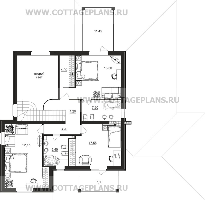 Проект дома 201-16 площадь 345.0 м2* из пеноблоков, газоблоков, двухэтажный с полноценным вторым этажом, со вторым светом