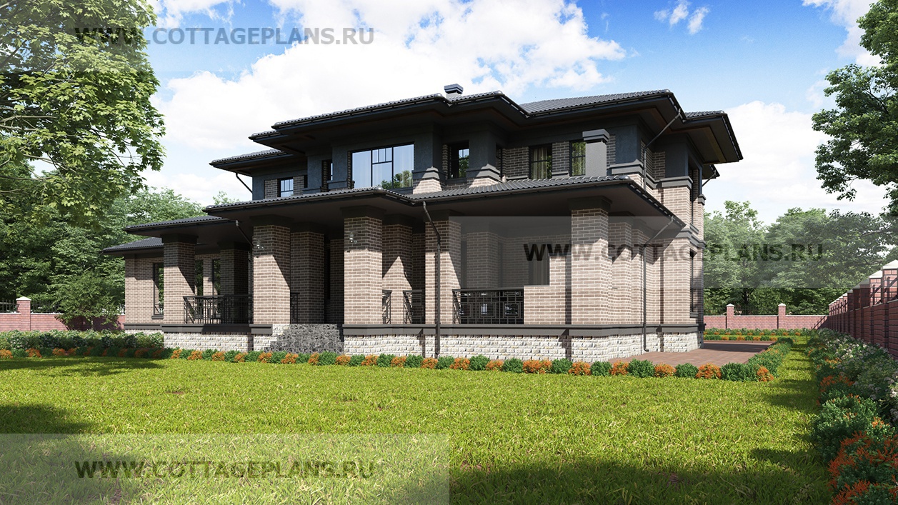 Проект дома 201-40 площадь 552.8 м2* из пеноблоков, газоблоков, двухэтажный с полноценным вторым этажом, с пристроенным гаражом на 2 машины