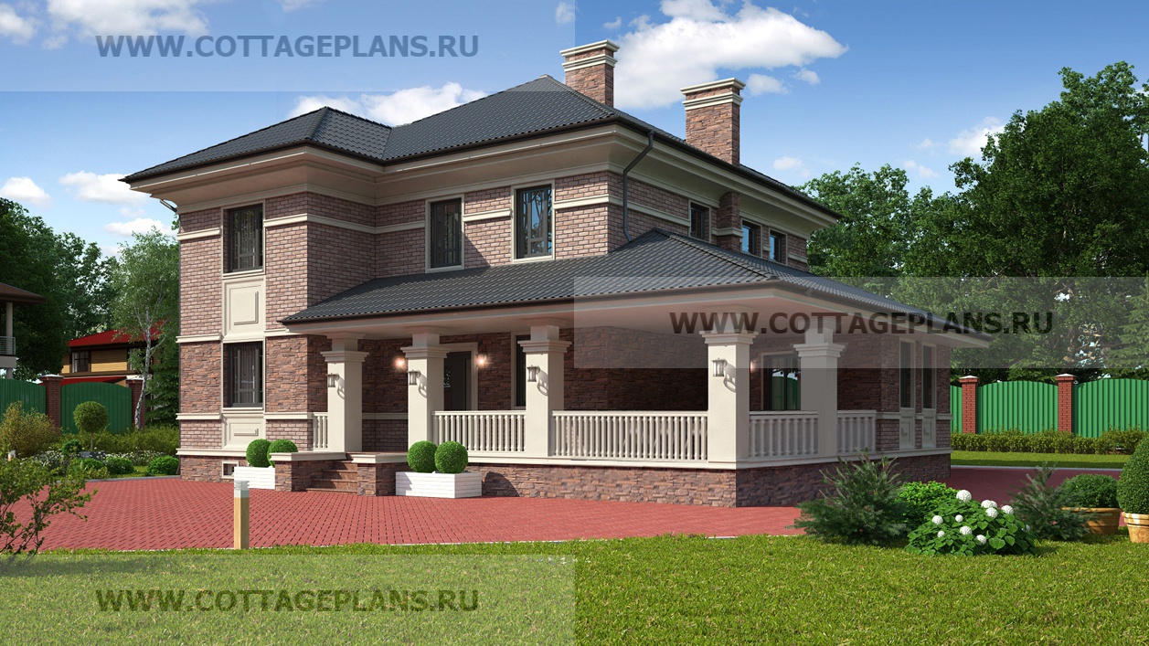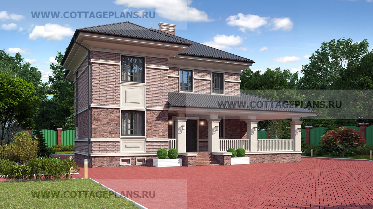 Проект дома 100-57 площадь 176.4 м2* из кирпича, керамических блоков, двухэтажный с полноценным вторым этажом, с четырьмя спальнями