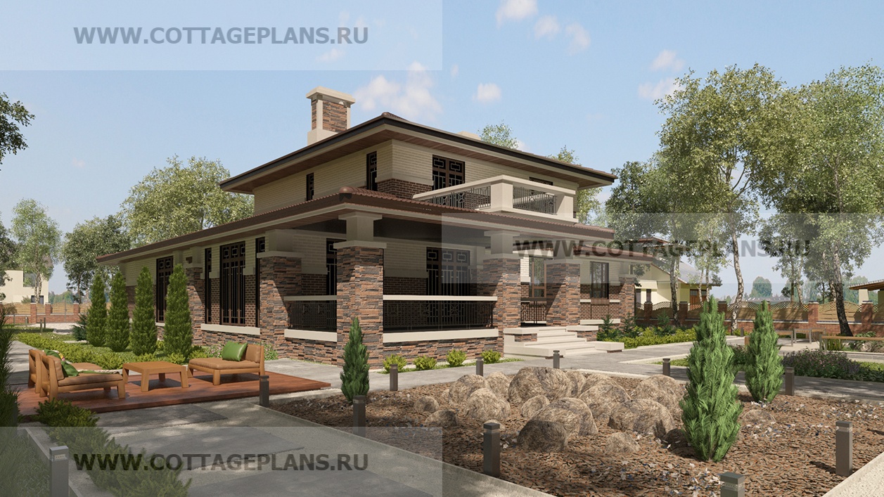 - жилых в стиле Райта с террасой
