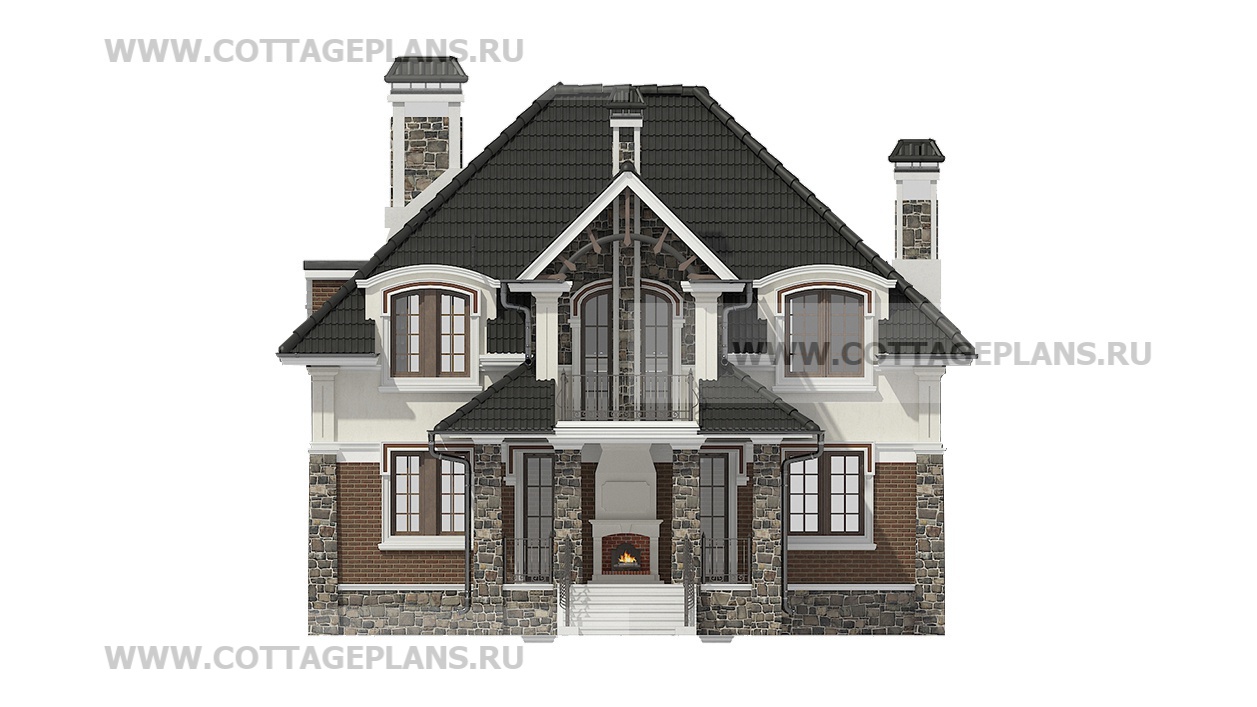 Проект дома 200-61 площадь 196.2 м2* из пеноблоков, газоблоков, двухэтажный с мансардой, с пятью спальнями