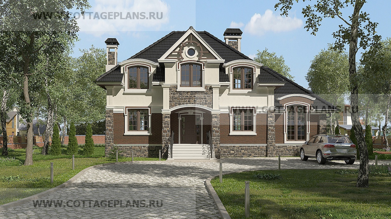 Проект дома 201-60 площадь 341.9 м2* из пеноблоков, газоблоков, двухэтажный с мансардой, с цокольным этажом