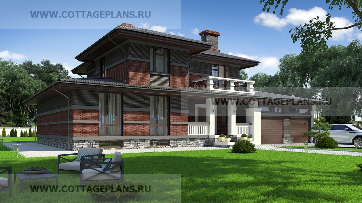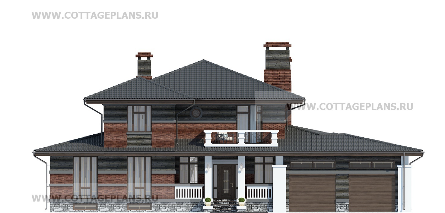 Проект дома 201-56 площадь 551.9 м2* из пеноблоков, газоблоков, двухэтажный с полноценным вторым этажом, с пристроенным гаражом на 2 машины