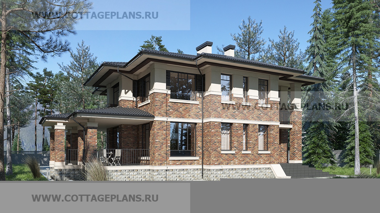 Проект дома 101-78 площадь 264.2 м2* из кирпича, керамических блоков, двухэтажный с полноценным вторым этажом, с цокольным этажом