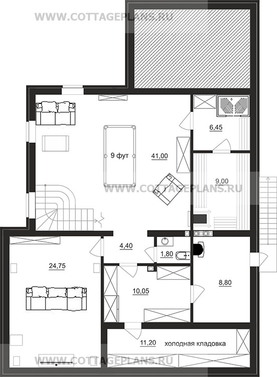 | Высота потолков цокольного этажа (мм.) | 2800 |