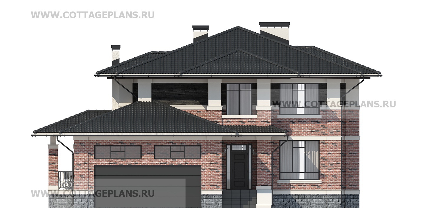 Проект дома 201-98 площадь 395.4 м2* из пеноблоков, газоблоков, двухэтажный с полноценным вторым этажом, с пристроенным гаражом на 2 машины