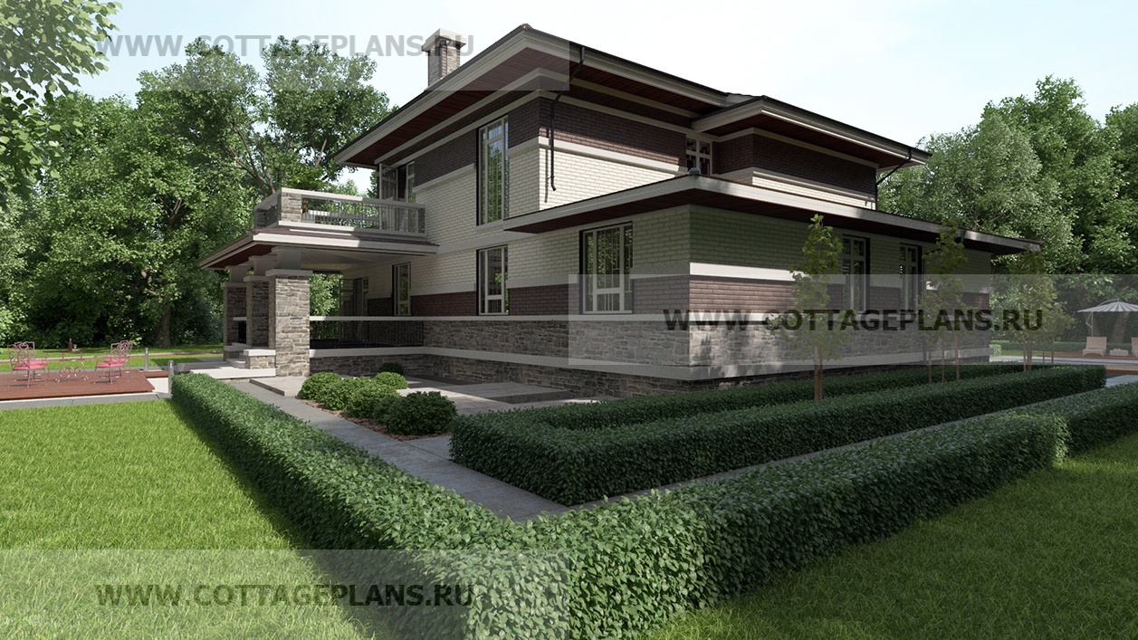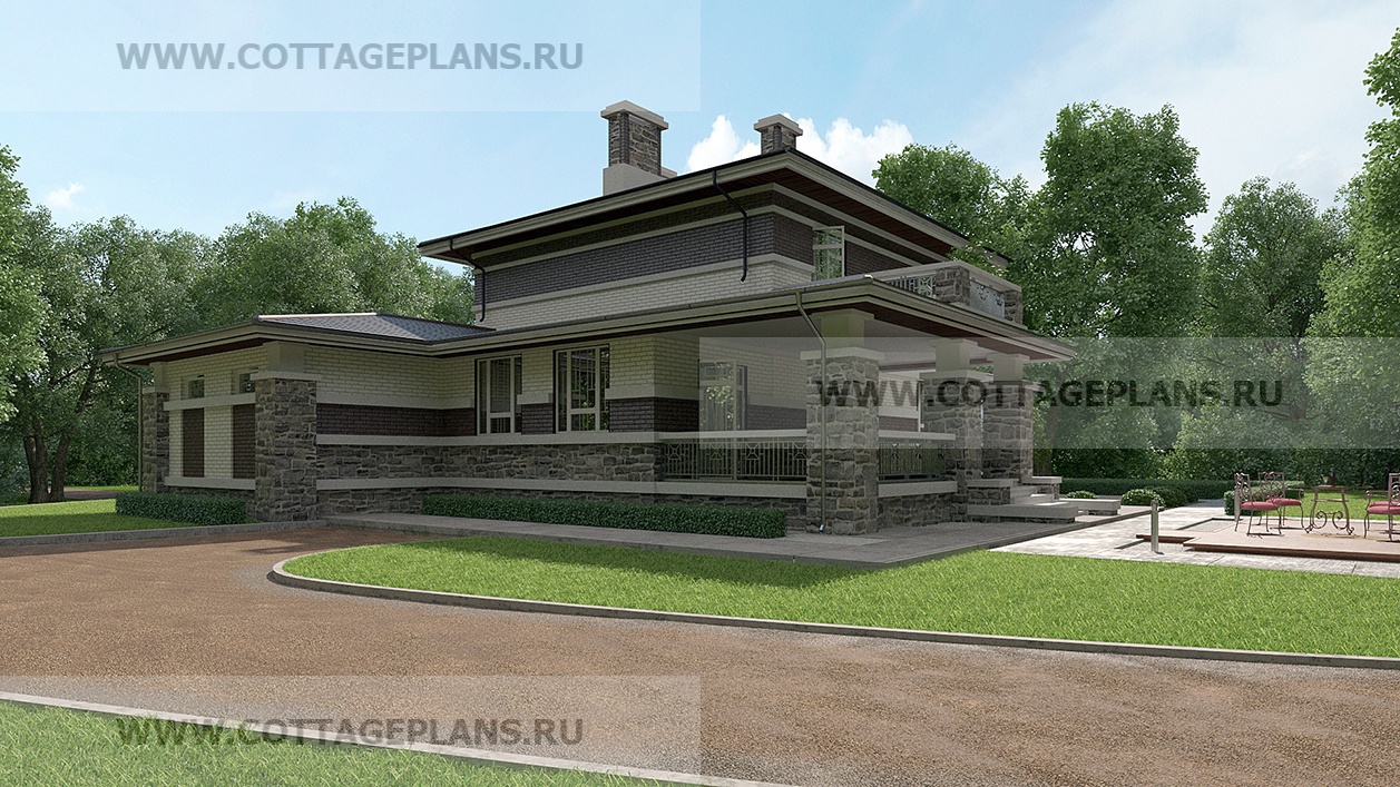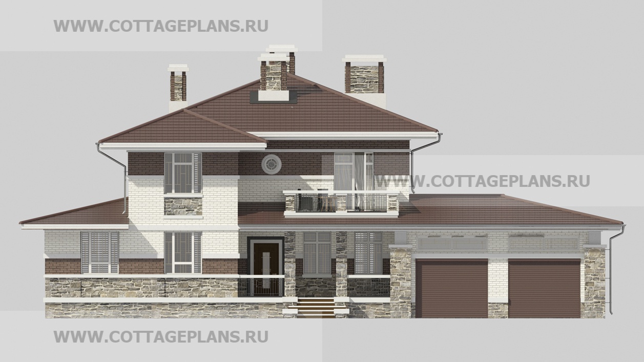 Проект дома 78-39 площадь 450.5 м2* из пеноблоков, газоблоков, двухэтажный, с полноценным вторым этажом меньшей площади, чем первый этаж, с пристроенным гаражом на 2 машины