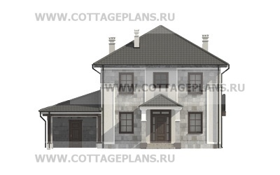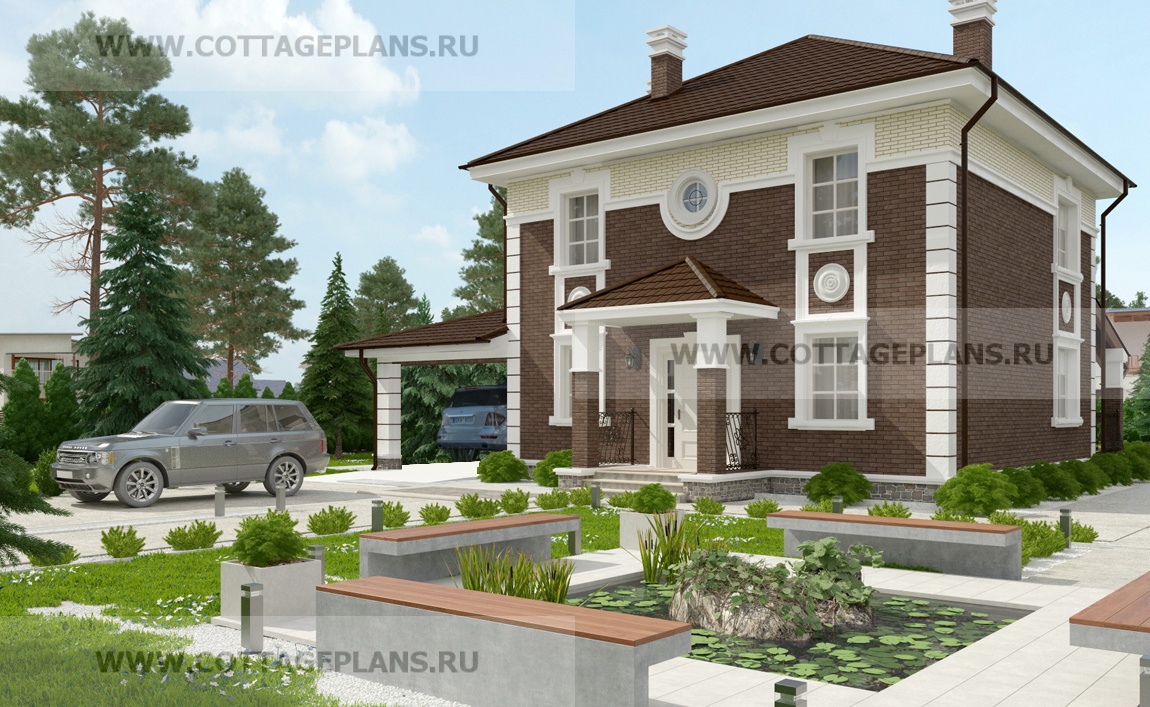 Проект дома 102-29 площадь 154.8 м2* из кирпича, керамических блоков, двухэтажный, с полноценным вторым этажом меньшей площади, чем первый этаж, с четырьмя спальнями