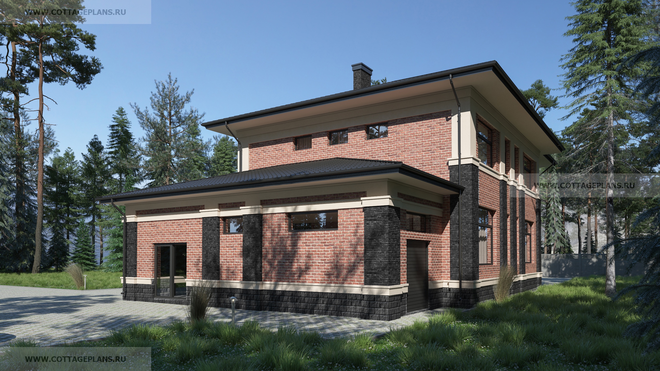 Проект дома 202-37 площадь 299.0 м2* из пеноблоков, газоблоков, двухэтажный, с полноценным вторым этажом меньшей площади, чем первый этаж, с пристроенным гаражом на 1 машину