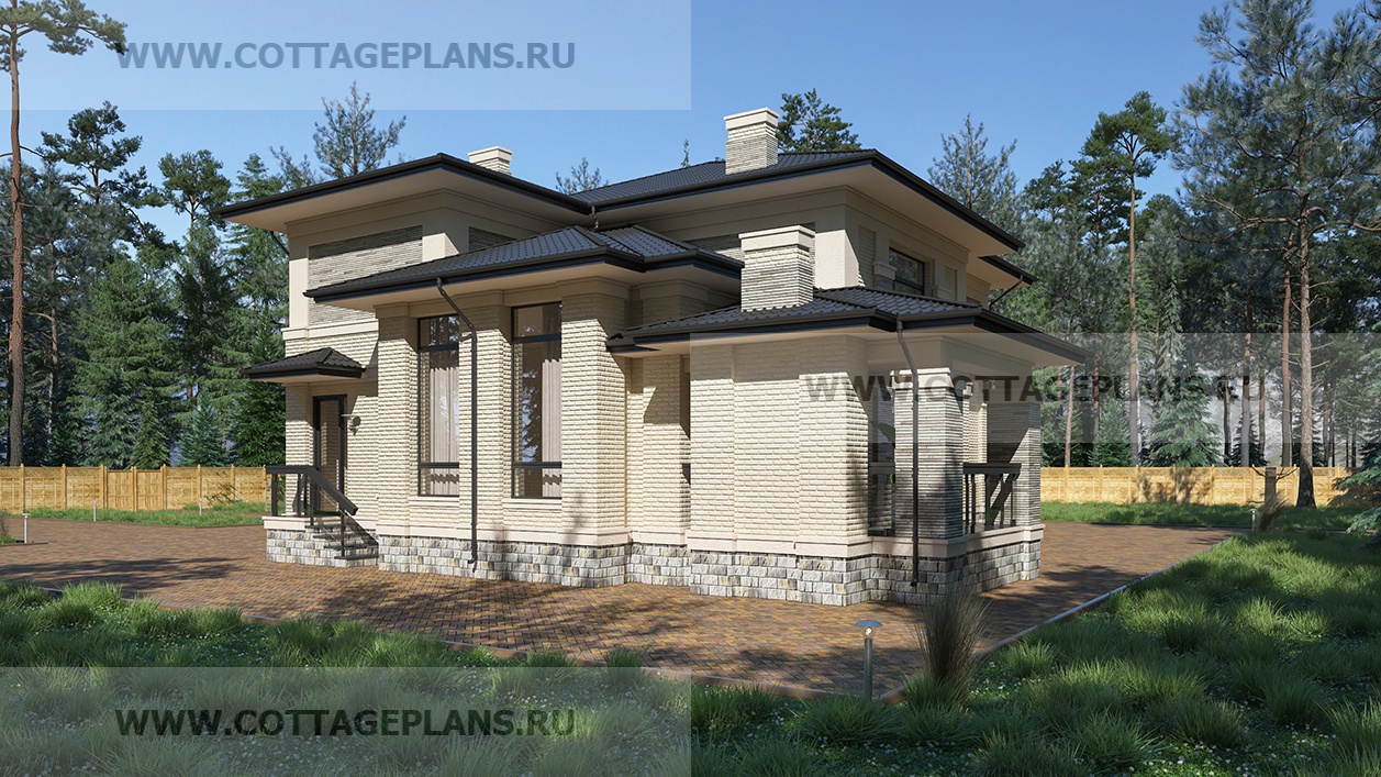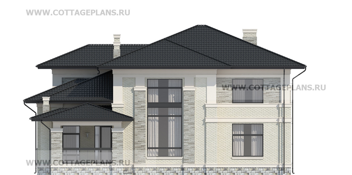 Проект дома 202-72 площадь 232.7 м2* из пеноблоков, газоблоков, двухэтажный, с полноценным вторым этажом меньшей площади, чем первый этаж, со вторым светом