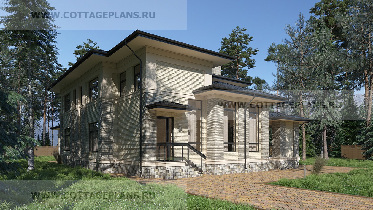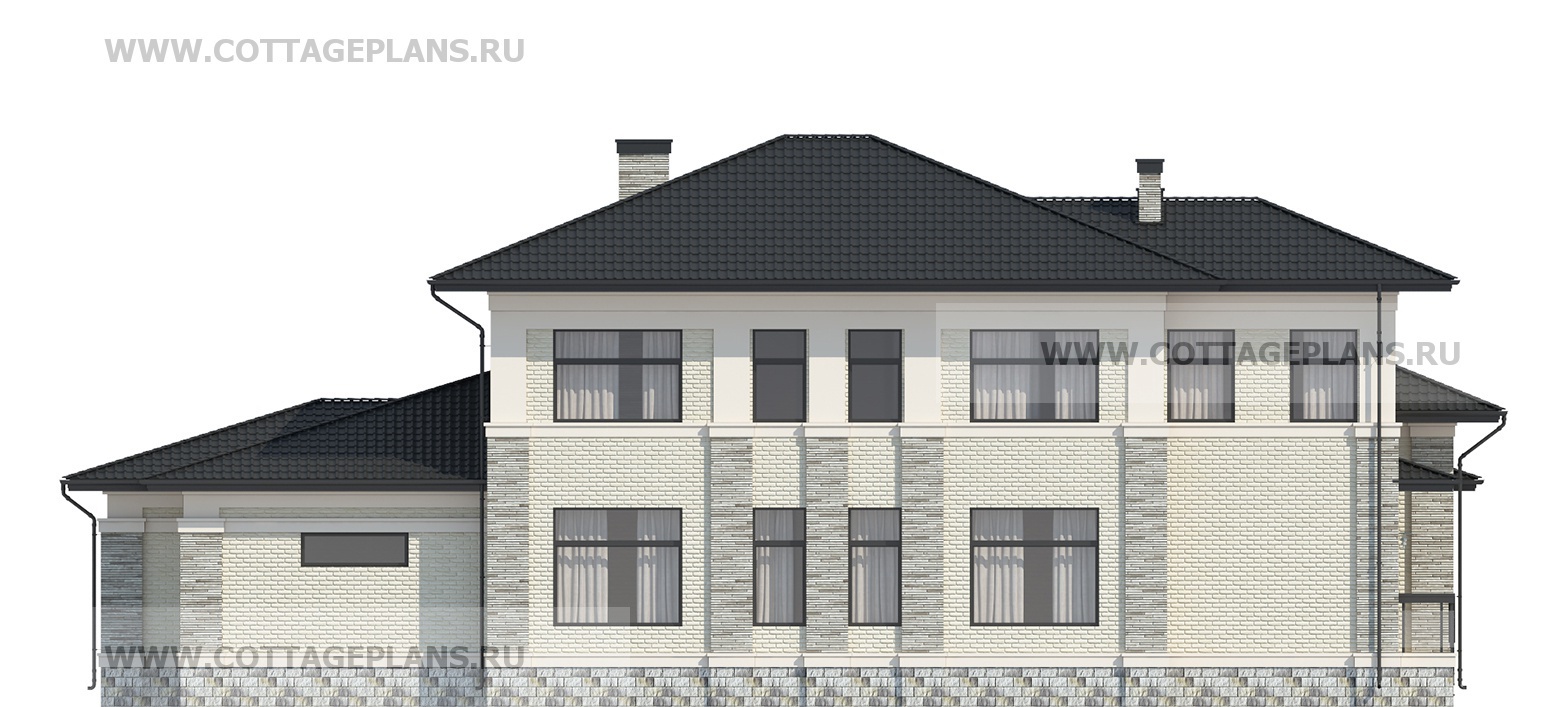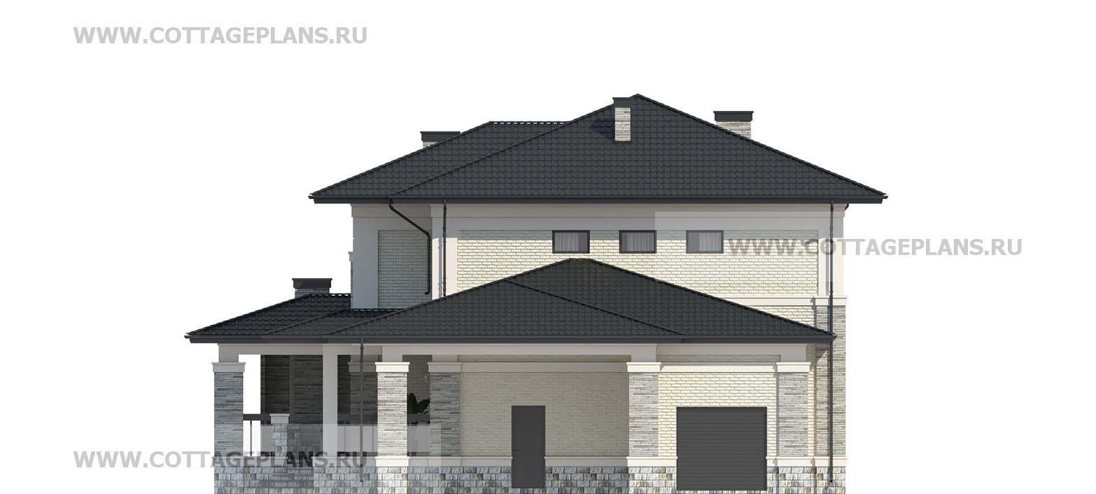 Проект дома 202-44 площадь 327.2 м2* из пеноблоков, газоблоков, двухэтажный, с полноценным вторым этажом меньшей площади, чем первый этаж, со вторым светом