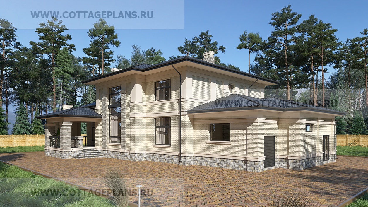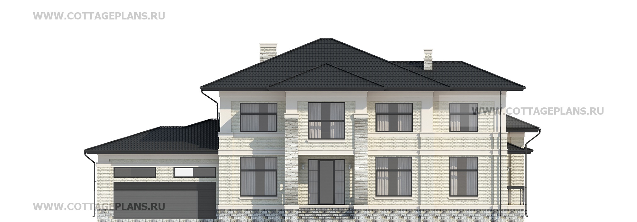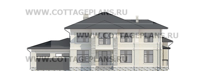 Проект дома 202-80 площадь 386.4 м2* из пеноблоков, газоблоков, двухэтажный, с полноценным вторым этажом меньшей площади, чем первый этаж, с пристроенным гаражом на 2 машины