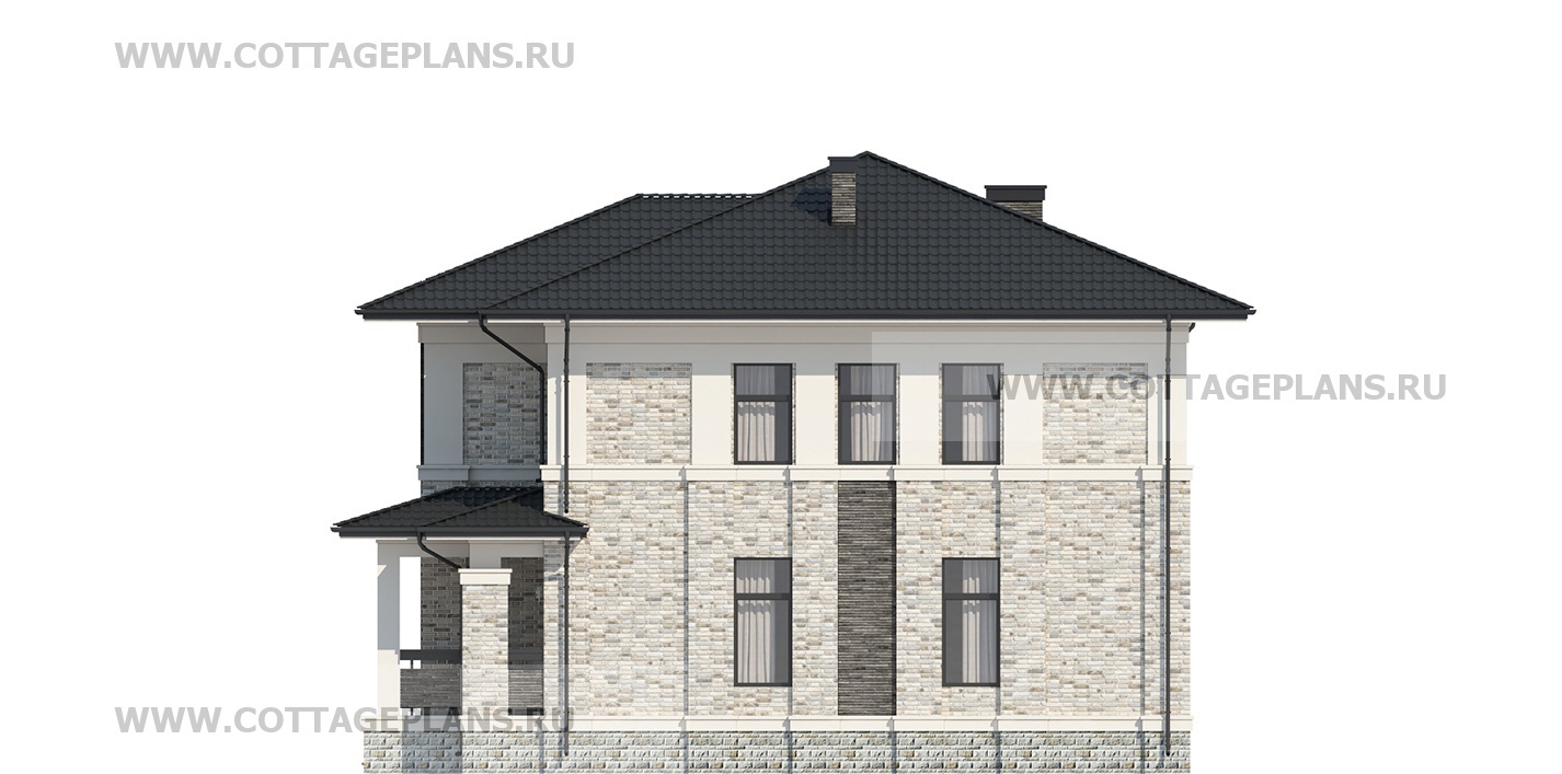 Проект дома 203-31 площадь 396.6 м2* из пеноблоков, газоблоков, двухэтажный, с полноценным вторым этажом меньшей площади, чем первый этаж, со вторым светом