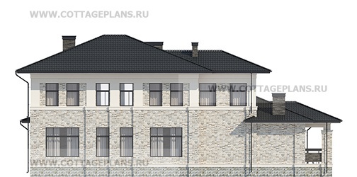 Проект дома 203-55 площадь 444.9 м2* из пеноблоков, газоблоков, двухэтажный, с полноценным вторым этажом меньшей площади, чем первый этаж, с цокольным этажом