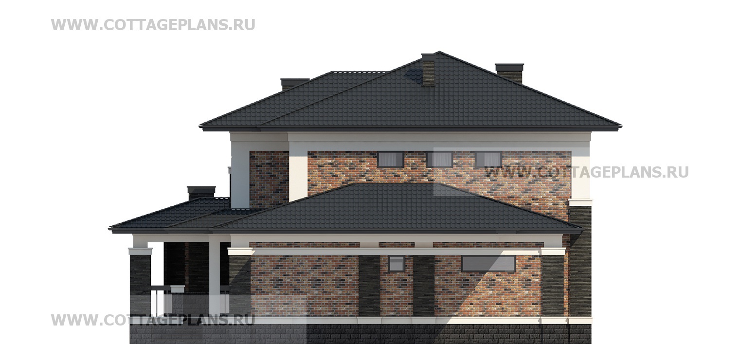Проект дома 203-50 площадь 563.1 м2* из пеноблоков, газоблоков, двухэтажный, с полноценным вторым этажом меньшей площади, чем первый этаж, со вторым светом