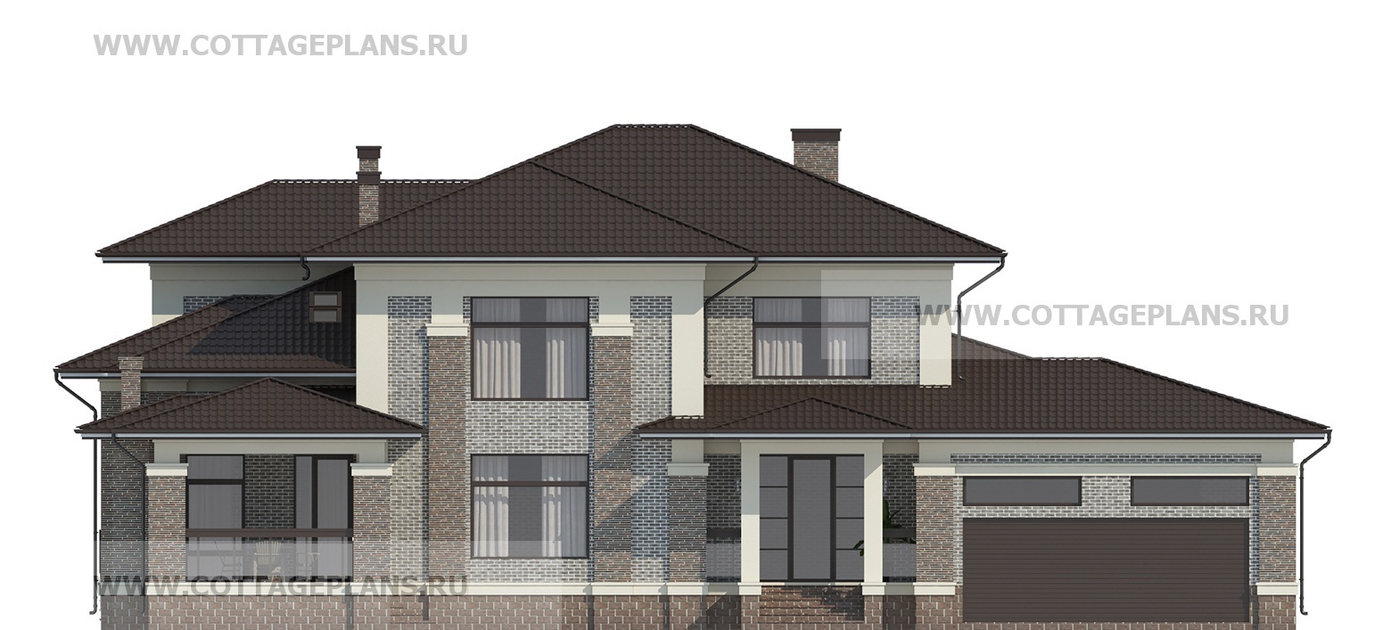 Проект дома 103-59 площадь 604.4 м2* из кирпича, керамических блоков, двухэтажный, с полноценным вторым этажом меньшей площади, чем первый этаж, с пристроенным гаражом на 2 машины