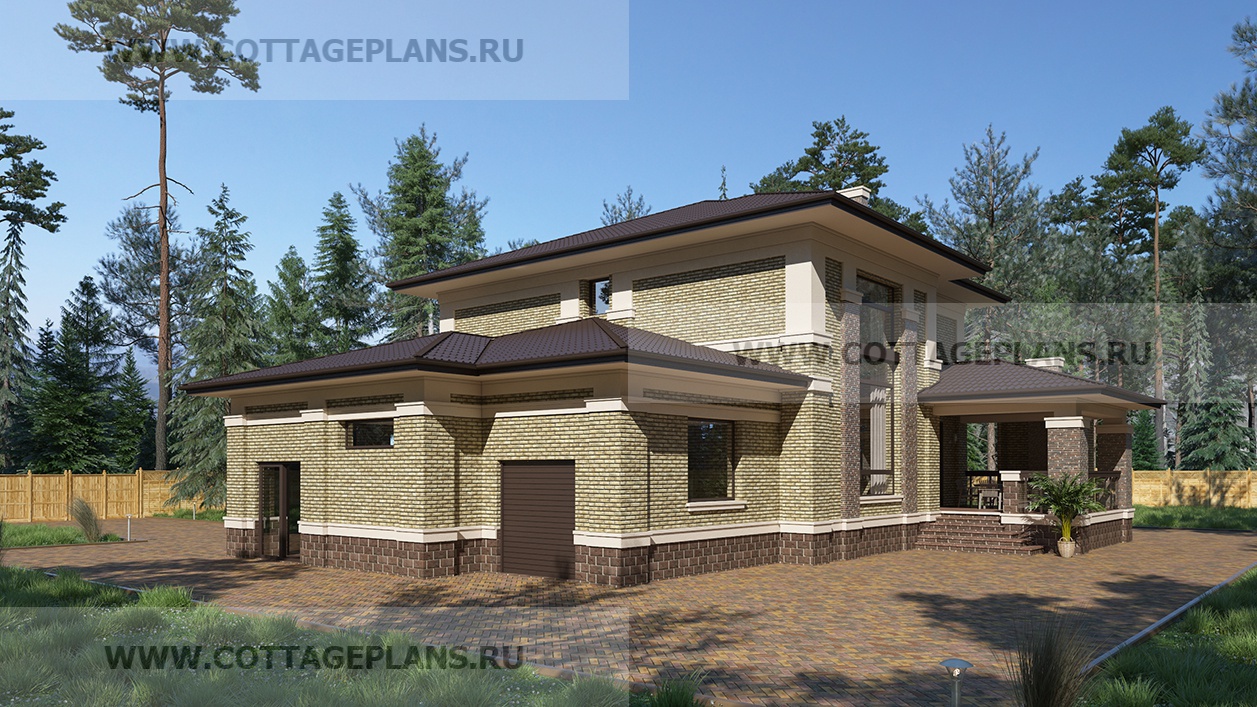 Проект дома 202-91 площадь 279.8 м2* из пеноблоков, газоблоков, двухэтажный, с полноценным вторым этажом меньшей площади, чем первый этаж, с пристроенным гаражом на 2 машины
