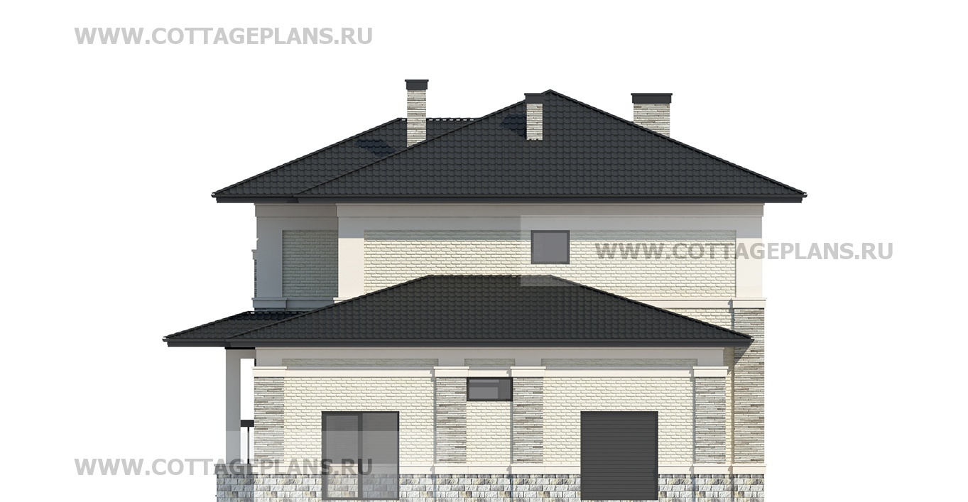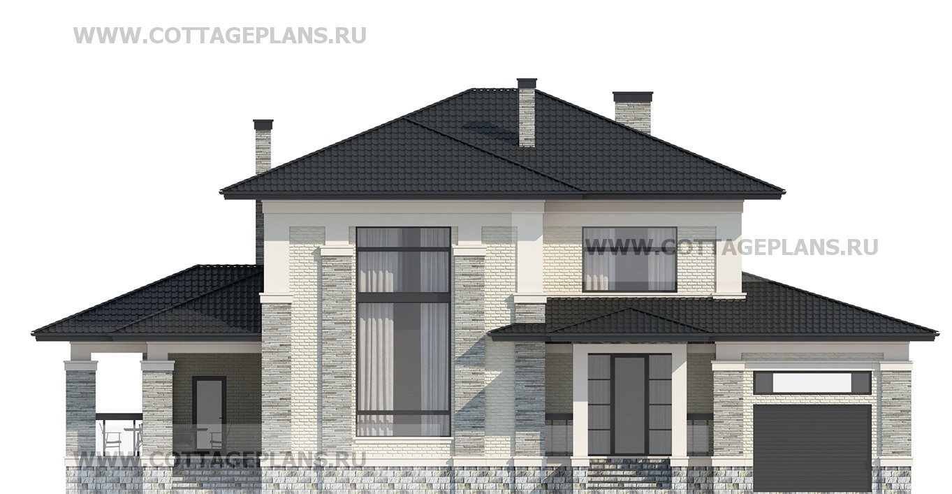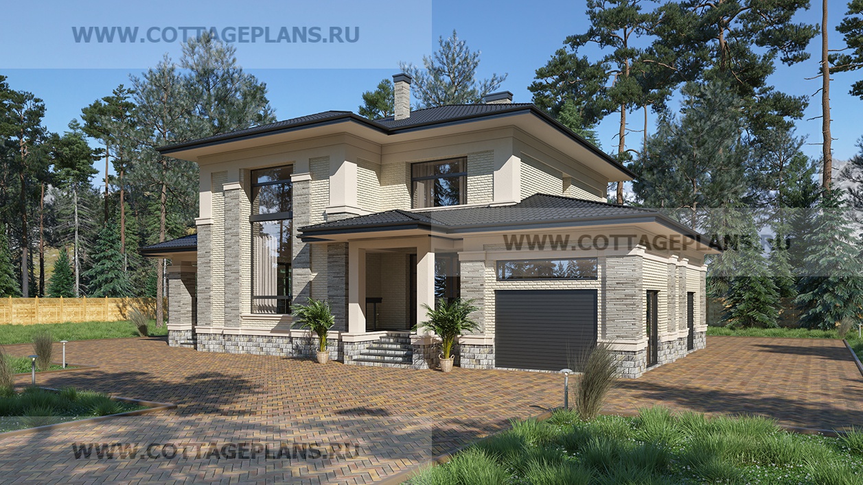 Проект дома 204-13 площадь 287.4 м2* из пеноблоков, газоблоков, двухэтажный, с полноценным вторым этажом меньшей площади, чем первый этаж, с пристроенным гаражом на 1 машину
