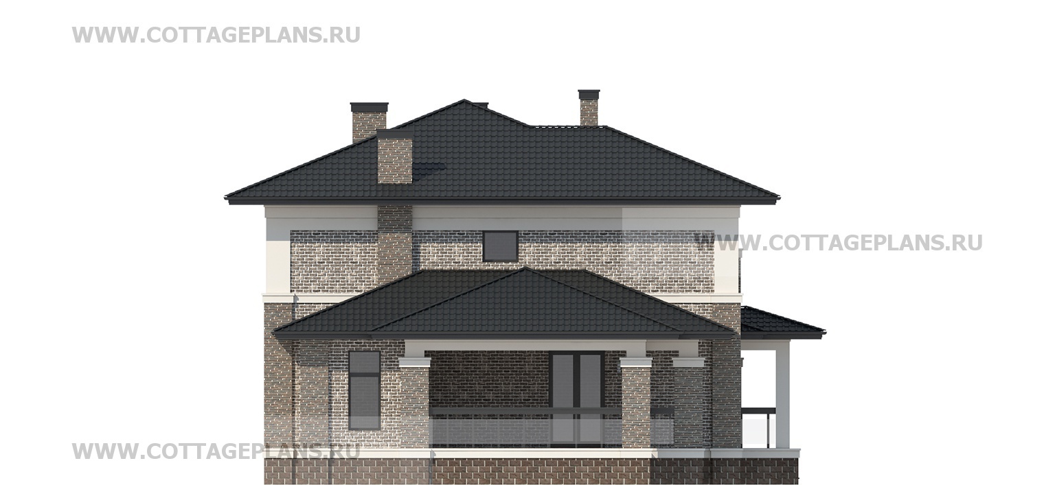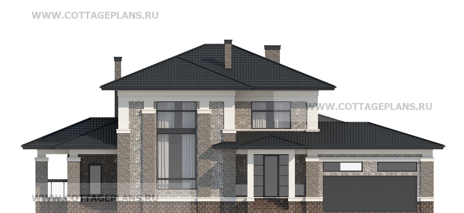 Проект дома 205-21 площадь 381.2 м2* из пеноблоков, газоблоков, двухэтажный, с полноценным вторым этажом меньшей площади, чем первый этаж, с пристроенным гаражом на 2 машины