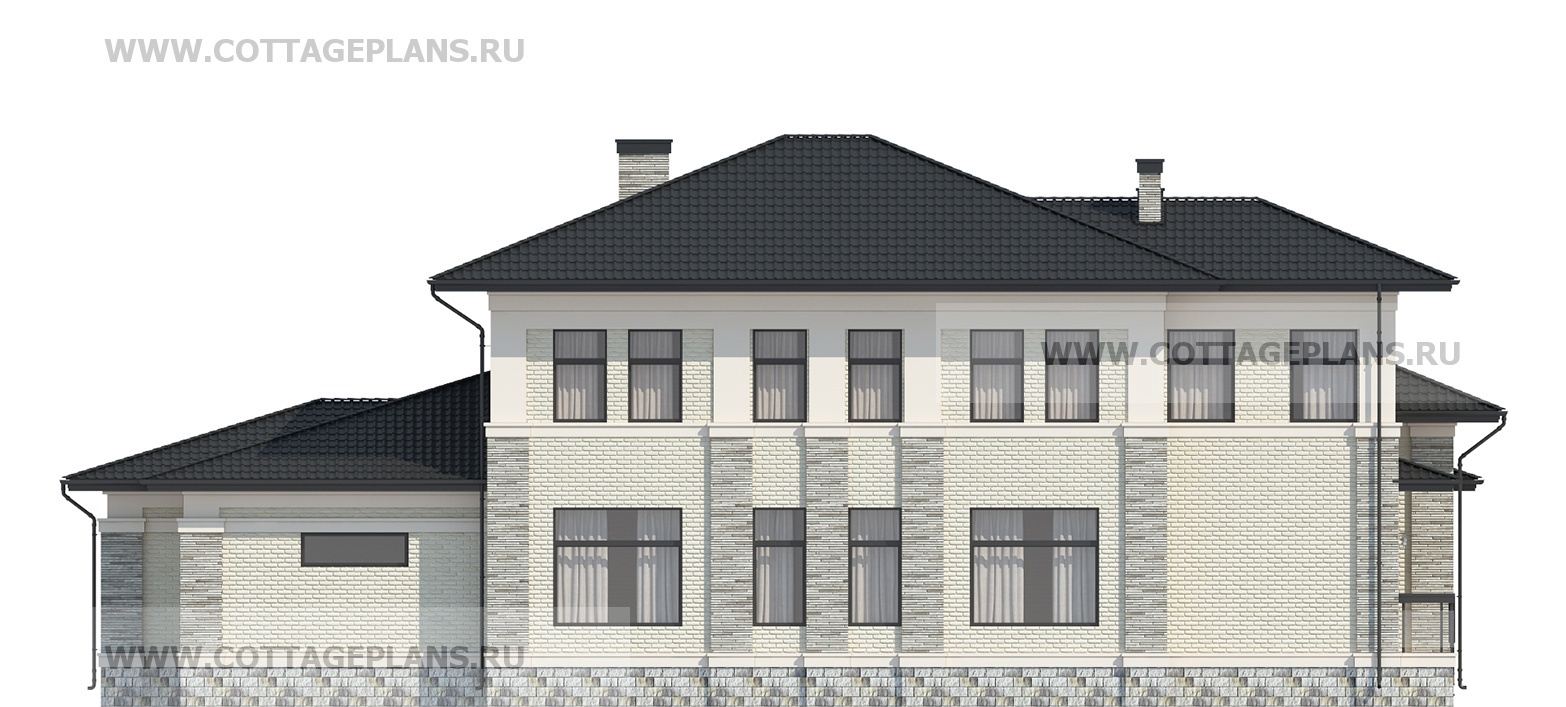 Проект дома 203-64 площадь 468.6 м2* из пеноблоков, газоблоков, двухэтажный, с полноценным вторым этажом меньшей площади, чем первый этаж, с цокольным этажом