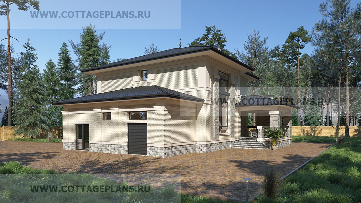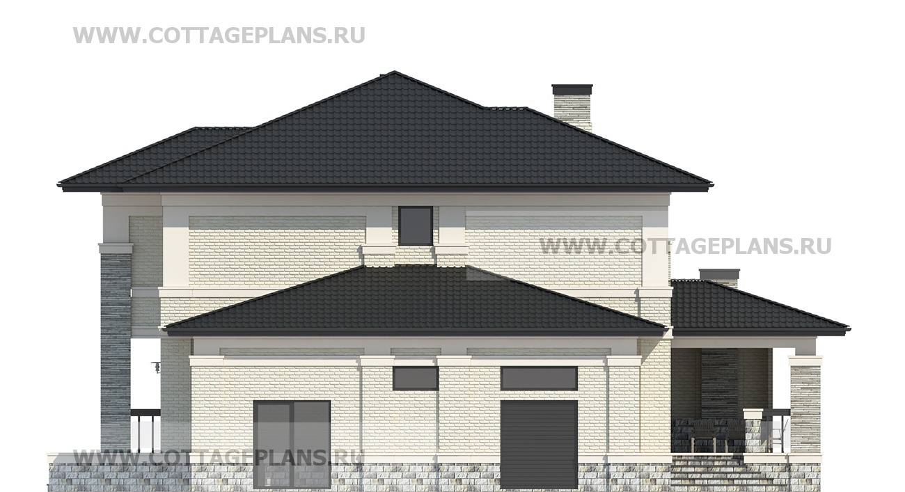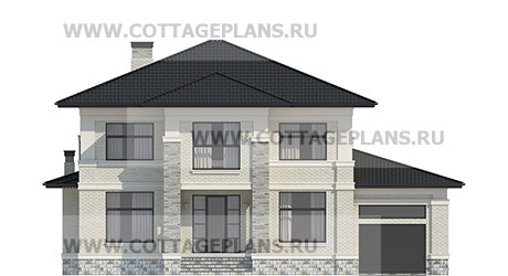Проект дома 203-95 площадь 436.6 м2* из пеноблоков, газоблоков, двухэтажный, с полноценным вторым этажом меньшей площади, чем первый этаж, с пристроенным гаражом на 1 машину