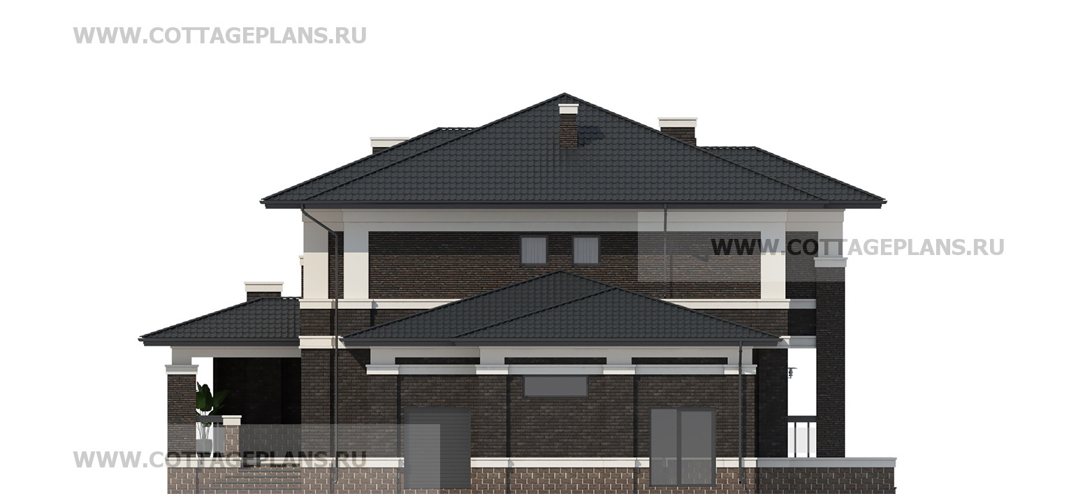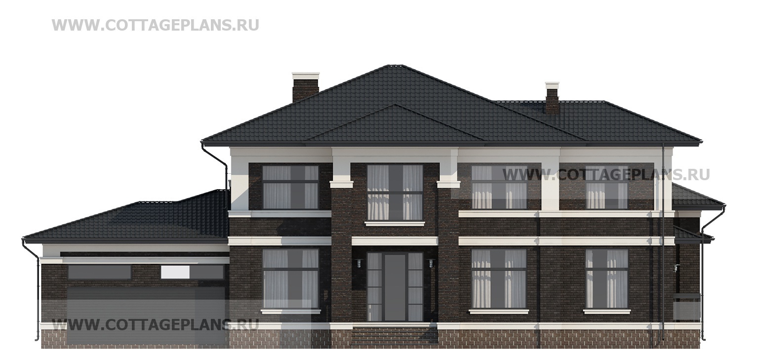 Проект дома 204-04 площадь 426.5 м2* из пеноблоков, газоблоков, двухэтажный, с полноценным вторым этажом меньшей площади, чем первый этаж, с пристроенным гаражом на 2 машины