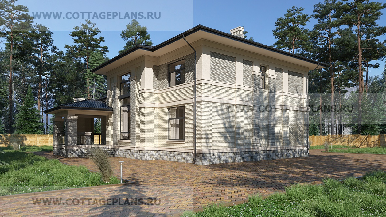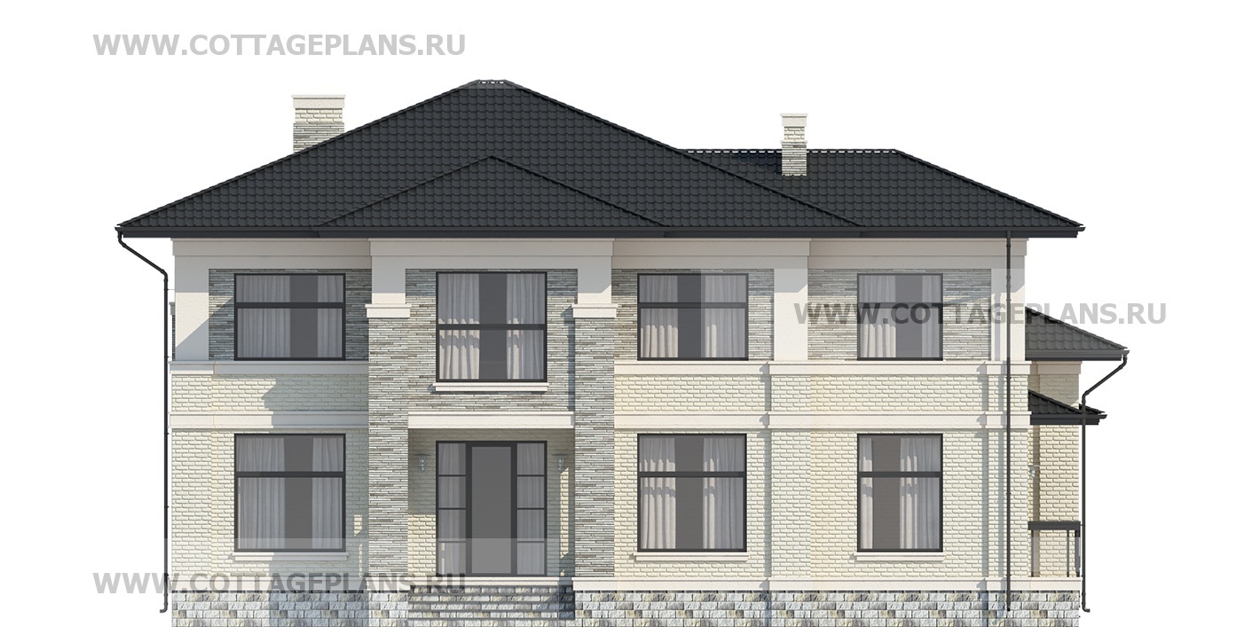 Проект дома 203-74 площадь 540.8 м2* из пеноблоков, газоблоков, двухэтажный, с полноценным вторым этажом меньшей площади, чем первый этаж, со вторым светом