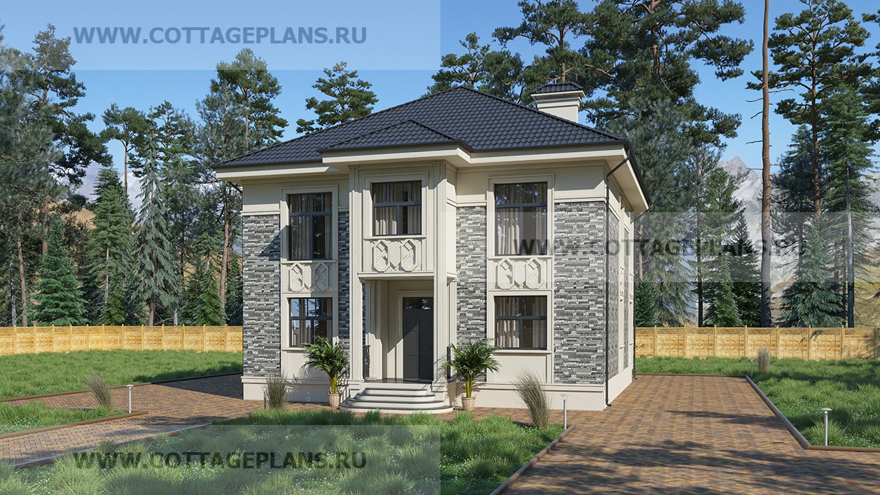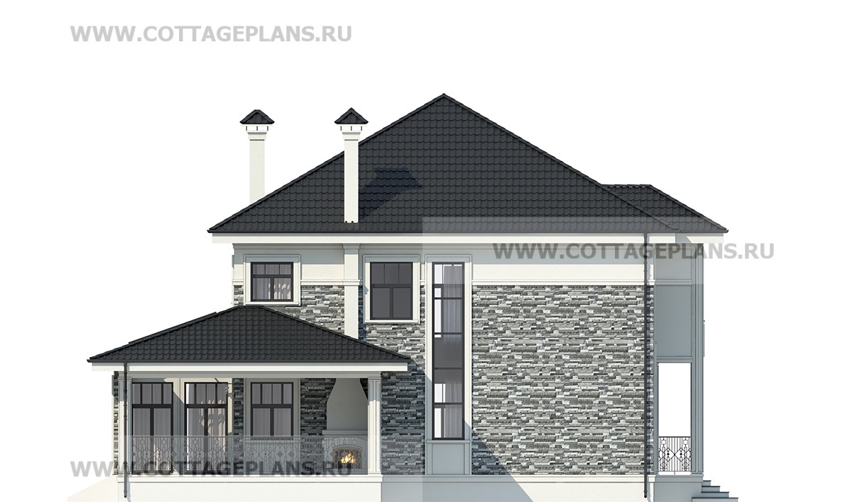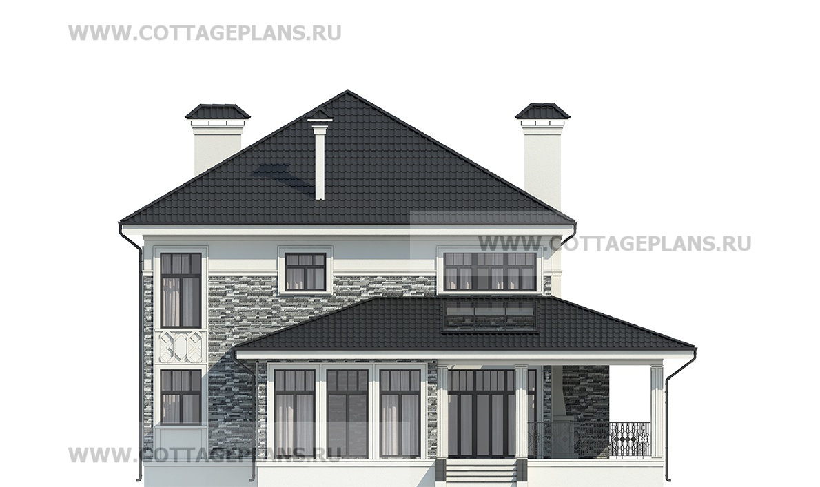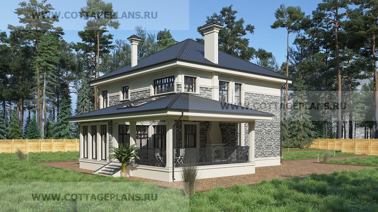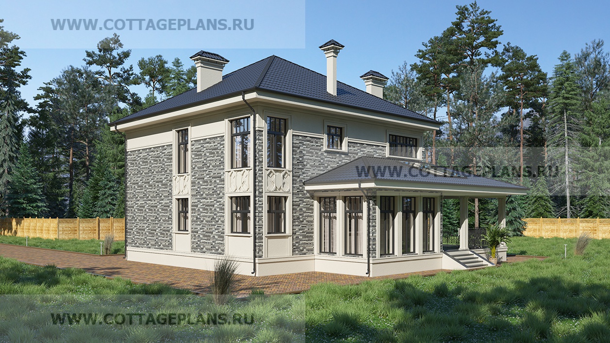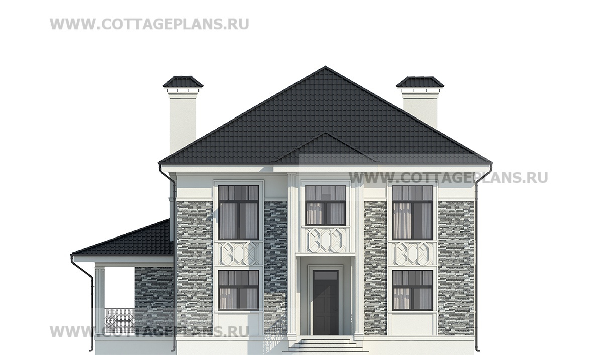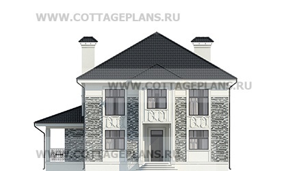 Проект дома 92-54 площадь 214.7 м2* из кирпича, керамических блоков, двухэтажный, с полноценным вторым этажом меньшей площади, чем первый этаж, с пятью спальнями