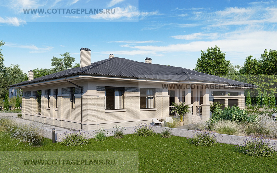Проект дома 27-75 площадь 214.8 м2* из пеноблоков, газоблоков, одноэтажный, с пристроенным гаражом на 2 машины