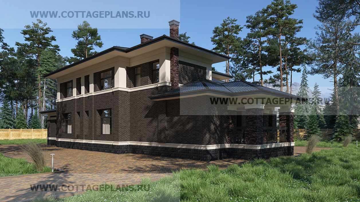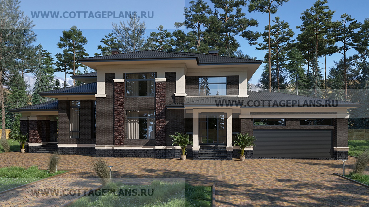 Проект дома 205-44 площадь 427.1 м2* из пеноблоков, газоблоков, двухэтажный, с полноценным вторым этажом меньшей площади, чем первый этаж, с пристроенным гаражом на 2 машины