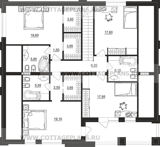 Проект дома 204-50 площадь 254.9 м2* из пеноблоков, газоблоков, двухэтажный с мансардой, с сауной, парной в доме