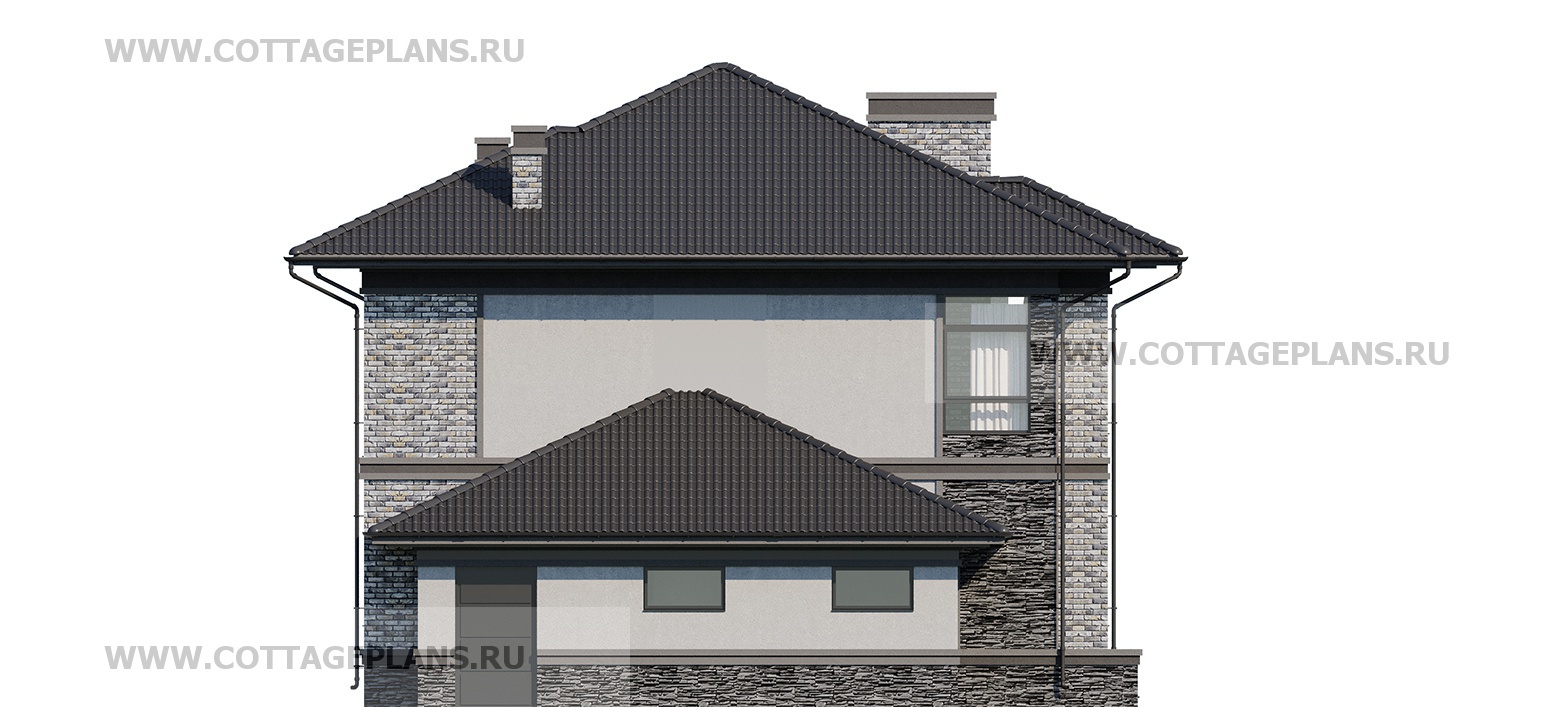 Проект дома 204-62 площадь 226.7 м2* из пеноблоков, газоблоков, двухэтажный с полноценным вторым этажом, с пристроенным гаражом на 1 машину