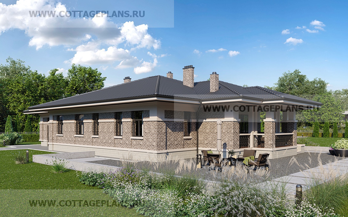 Проект дома 28-92 площадь 303.9 м2* из пеноблоков, газоблоков, одноэтажный, с пристроенным гаражом на 2 машины