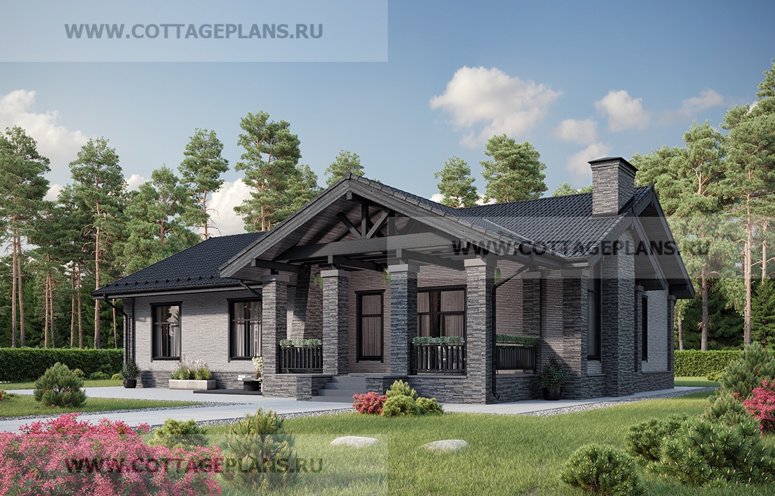 Проект дома 900-76 площадь 177.8 м2* из кирпича, керамических блоков, одноэтажный, с пристроенным гаражом на 1 машину