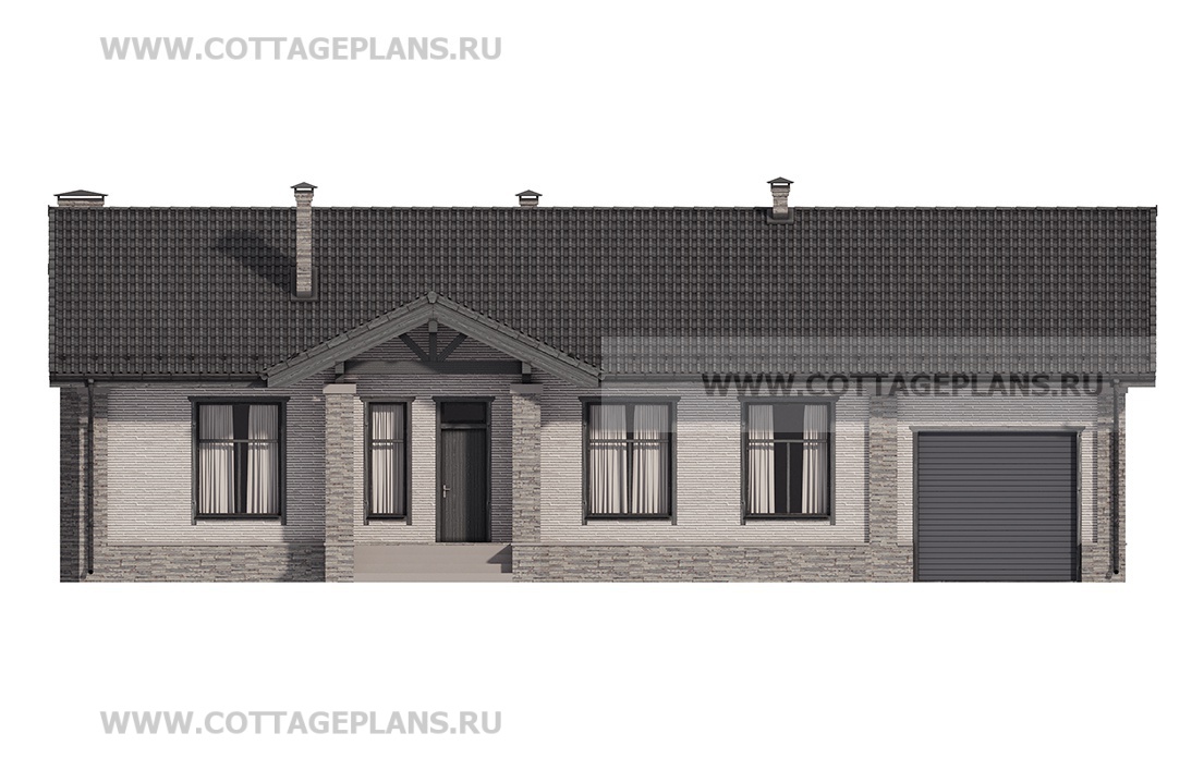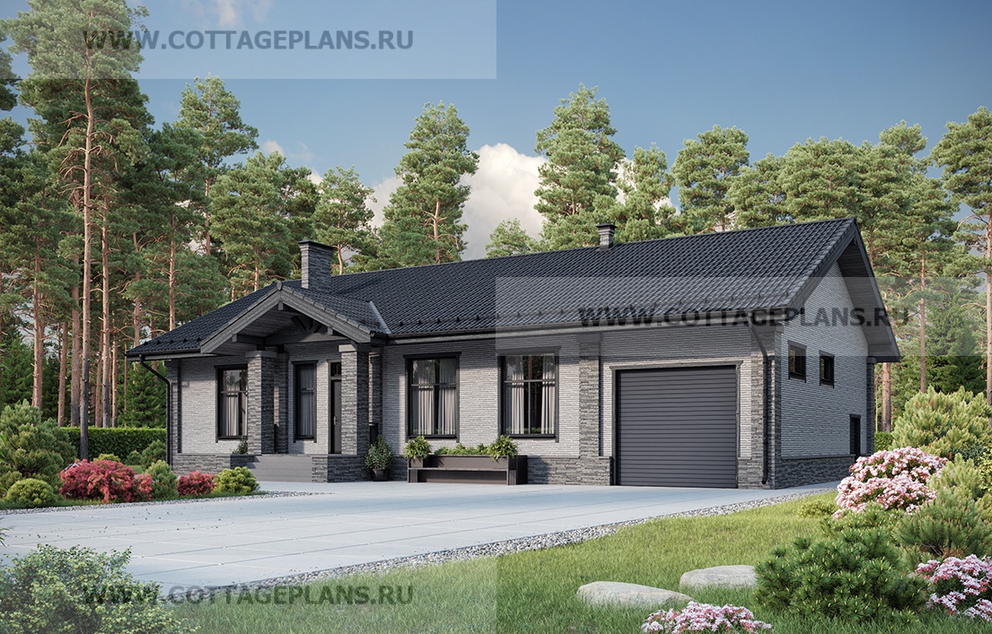 Проект дома 900-77 площадь 205.6 м2* из кирпича, керамических блоков, одноэтажный, с пристроенным гаражом на 1 машину