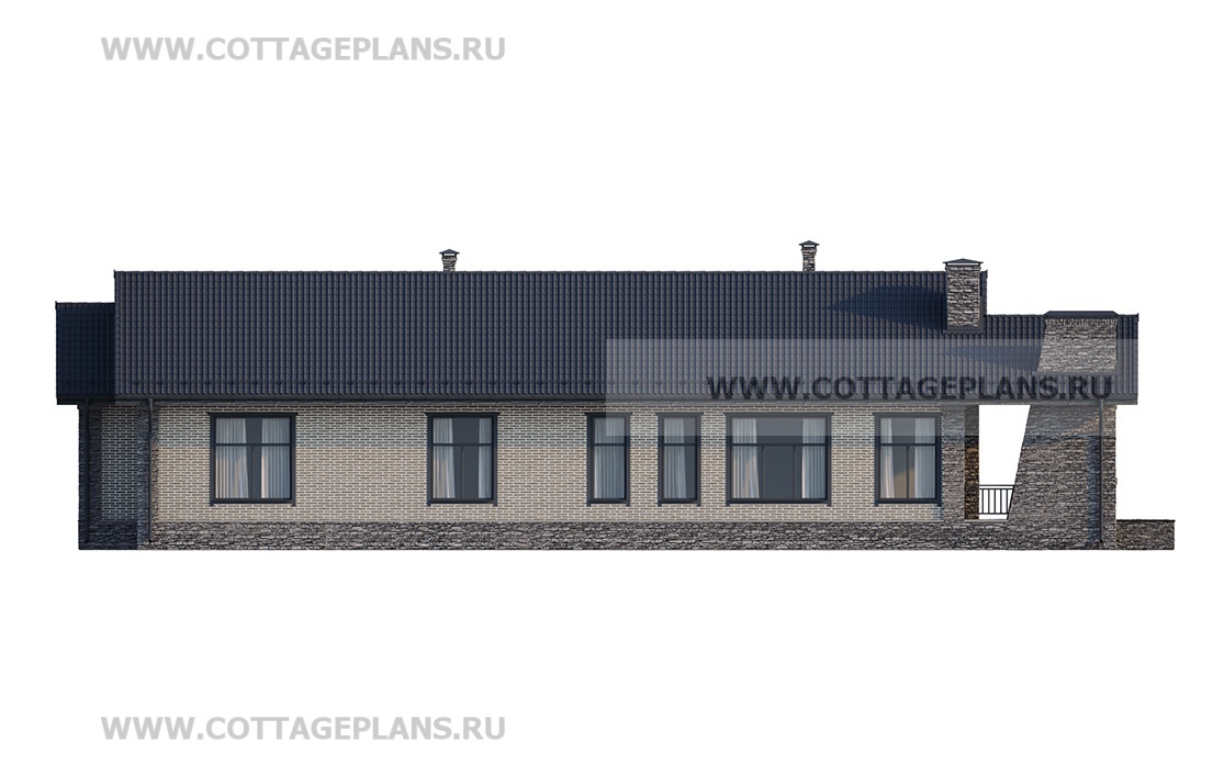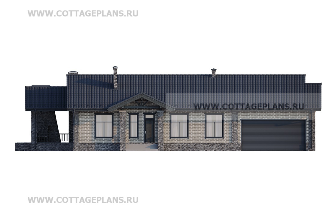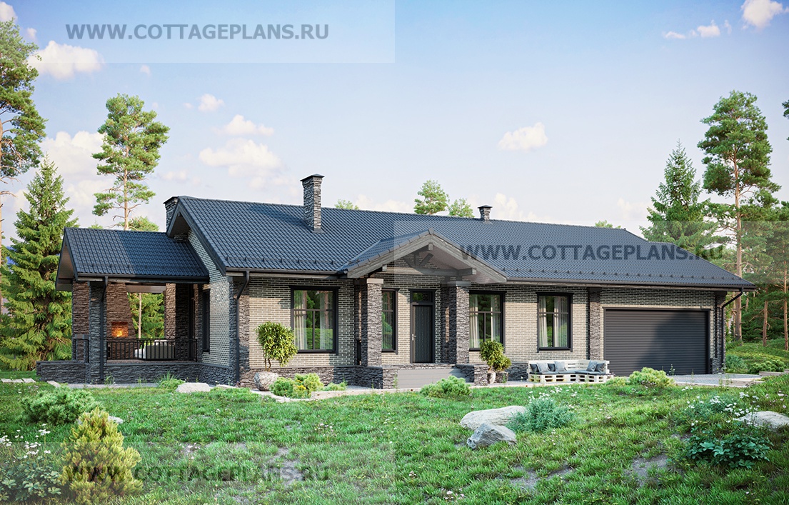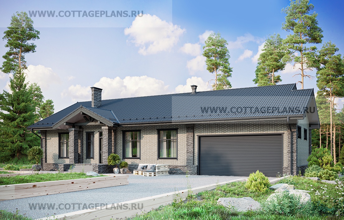 Проект дома 902-05 площадь 232.0 м2* из кирпича, керамических блоков, одноэтажный, с пристроенным гаражом на 2 машины