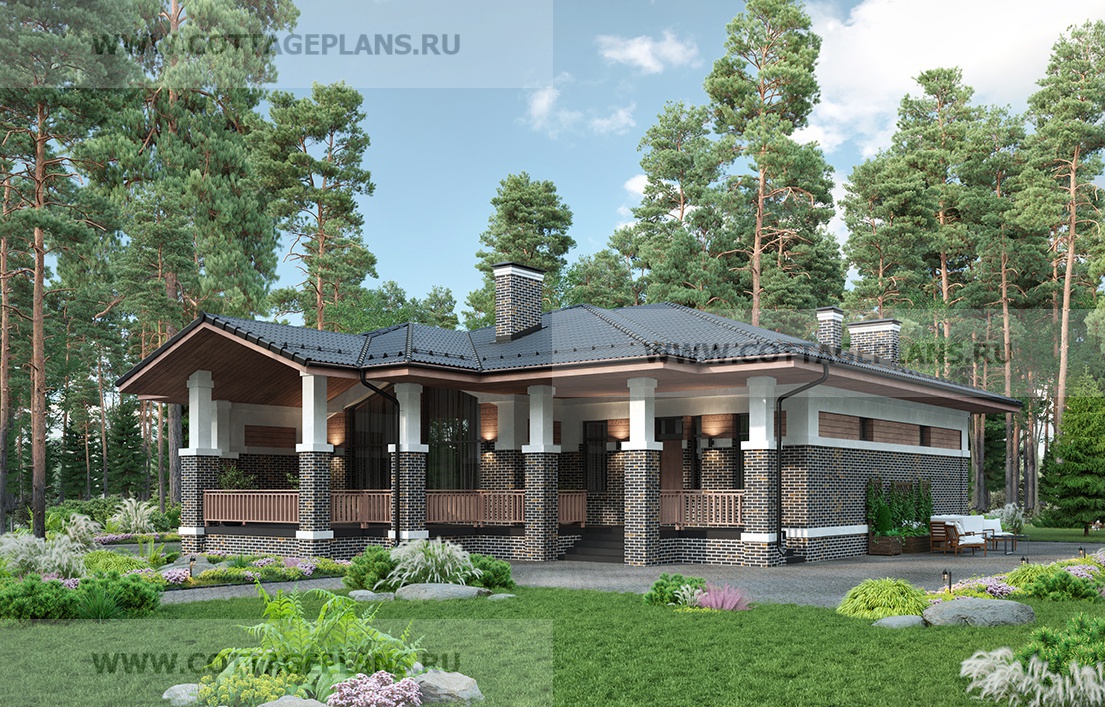 Проект дома 700-01 площадь 144.4 м2* из пеноблоков, газоблоков, одноэтажный, с сауной, парной в доме
