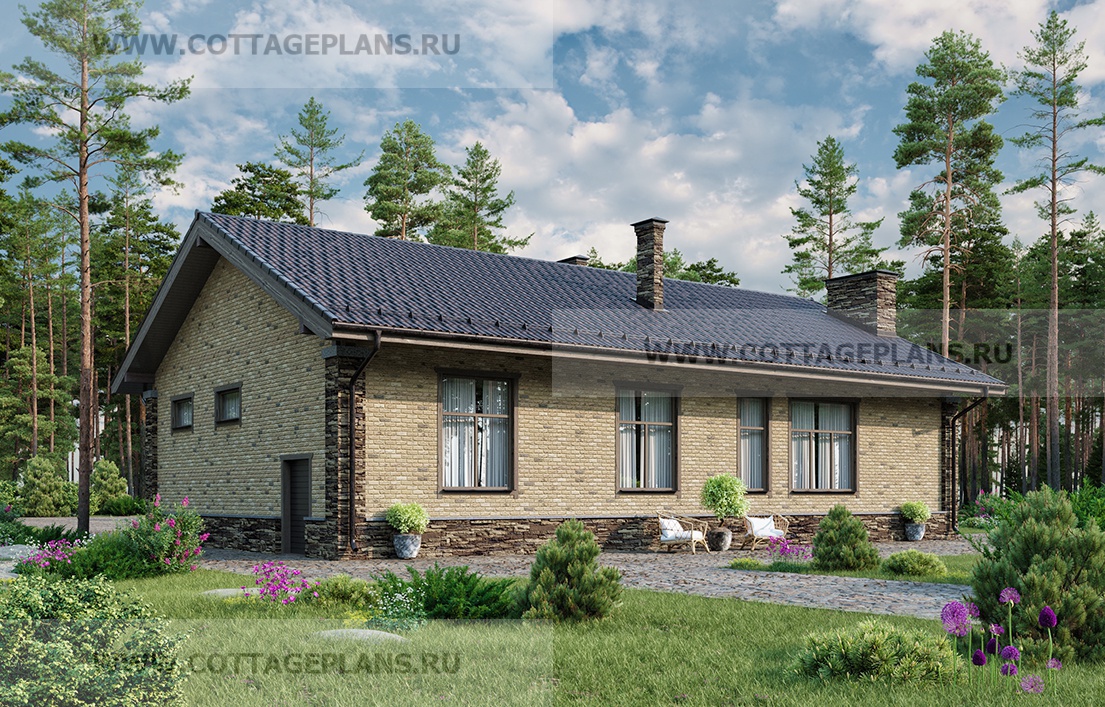 Проект дома 700-73 площадь 134.7 м2* из пеноблоков, газоблоков, одноэтажный, с пристроенным гаражом на 1 машину