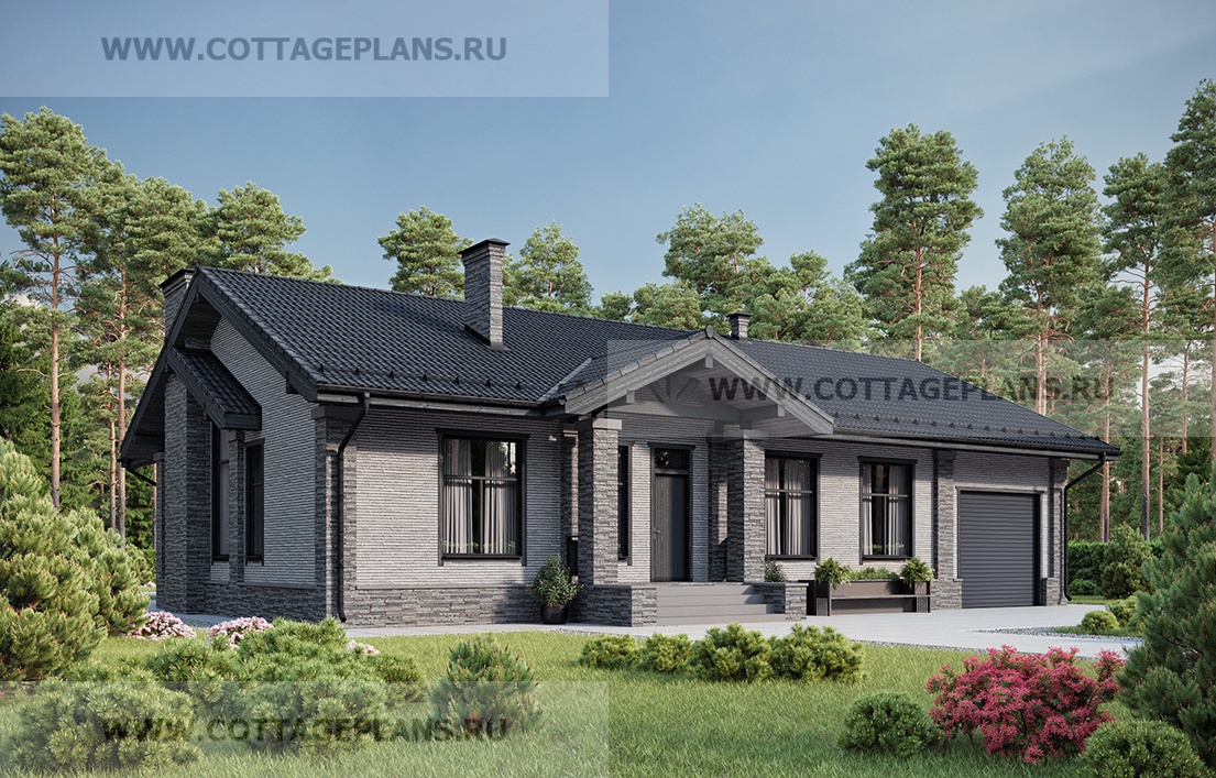 Проект дома 700-75 площадь 141.7 м2* из пеноблоков, газоблоков, одноэтажный, с пристроенным гаражом на 1 машину